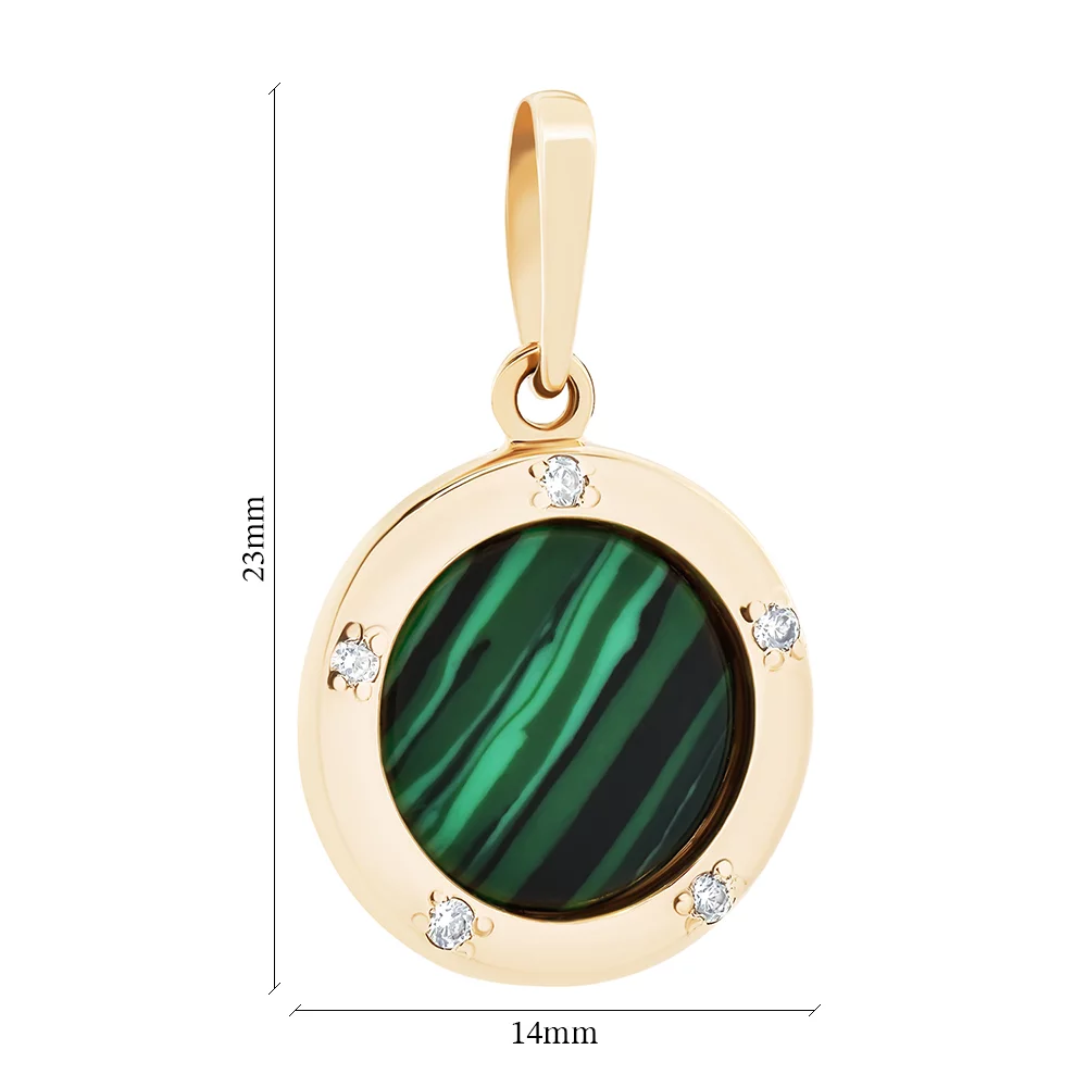 Кулон з червоного золота з малахітом і фіанітами - 1500183