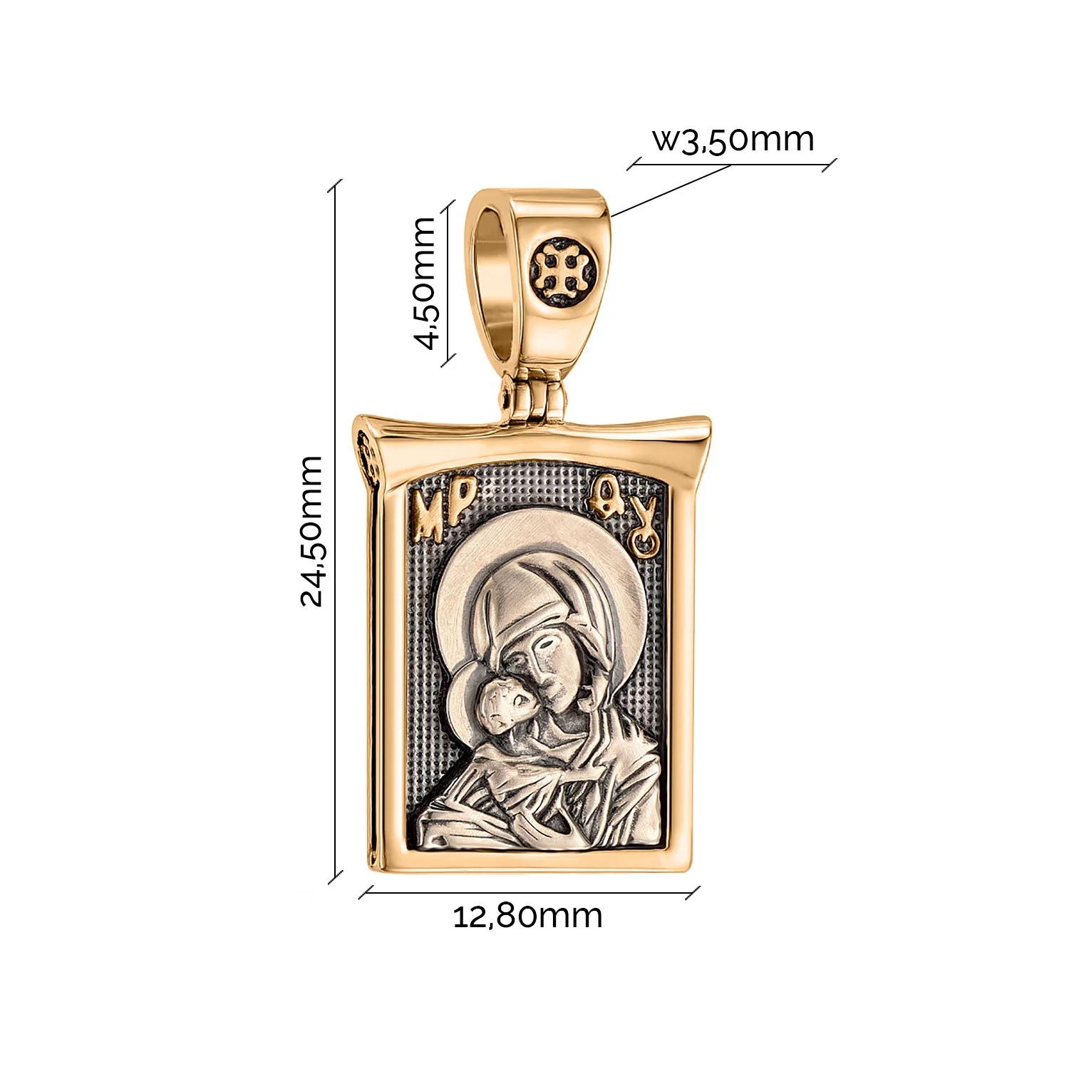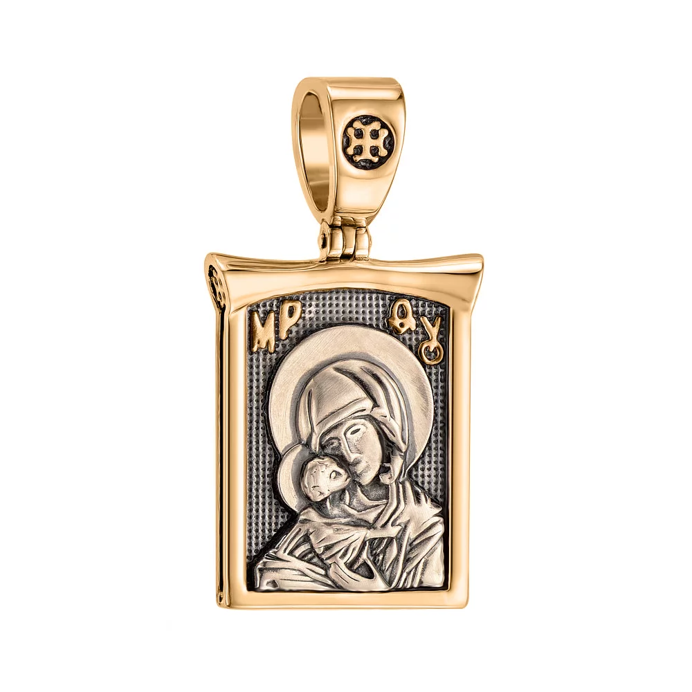 Ладанка з червоного золота з чорнінням Божа Матір "Казанська" - 971989