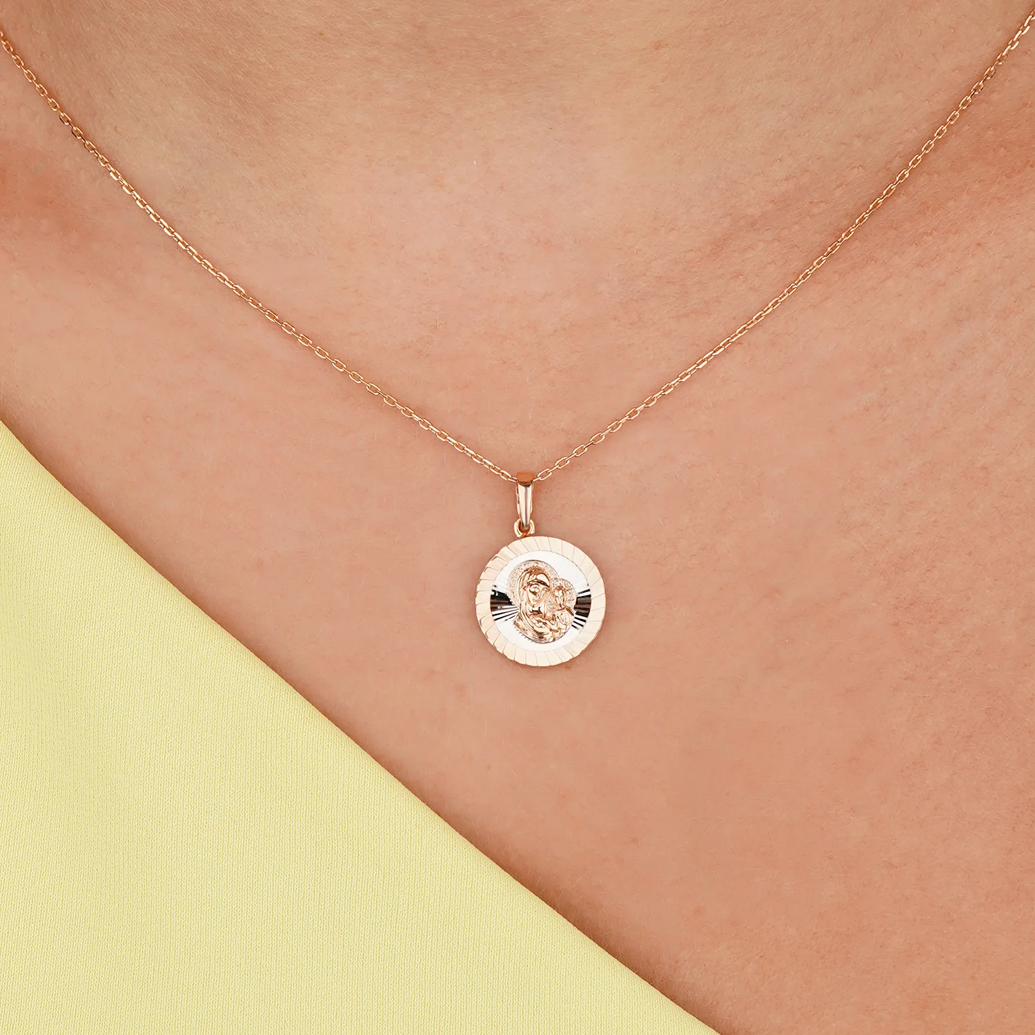 Ладанка з червоного золота з чорнінням Божа Матір "Казанська" - 971989