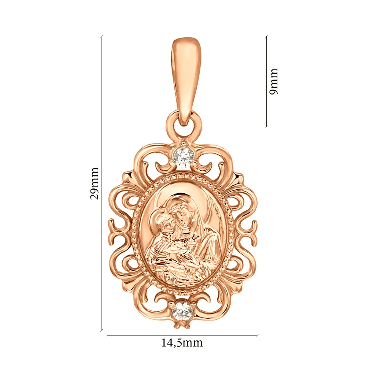 Ладанка з червоного золота з фіанітом Богородиця "Володимирська" - 960236
