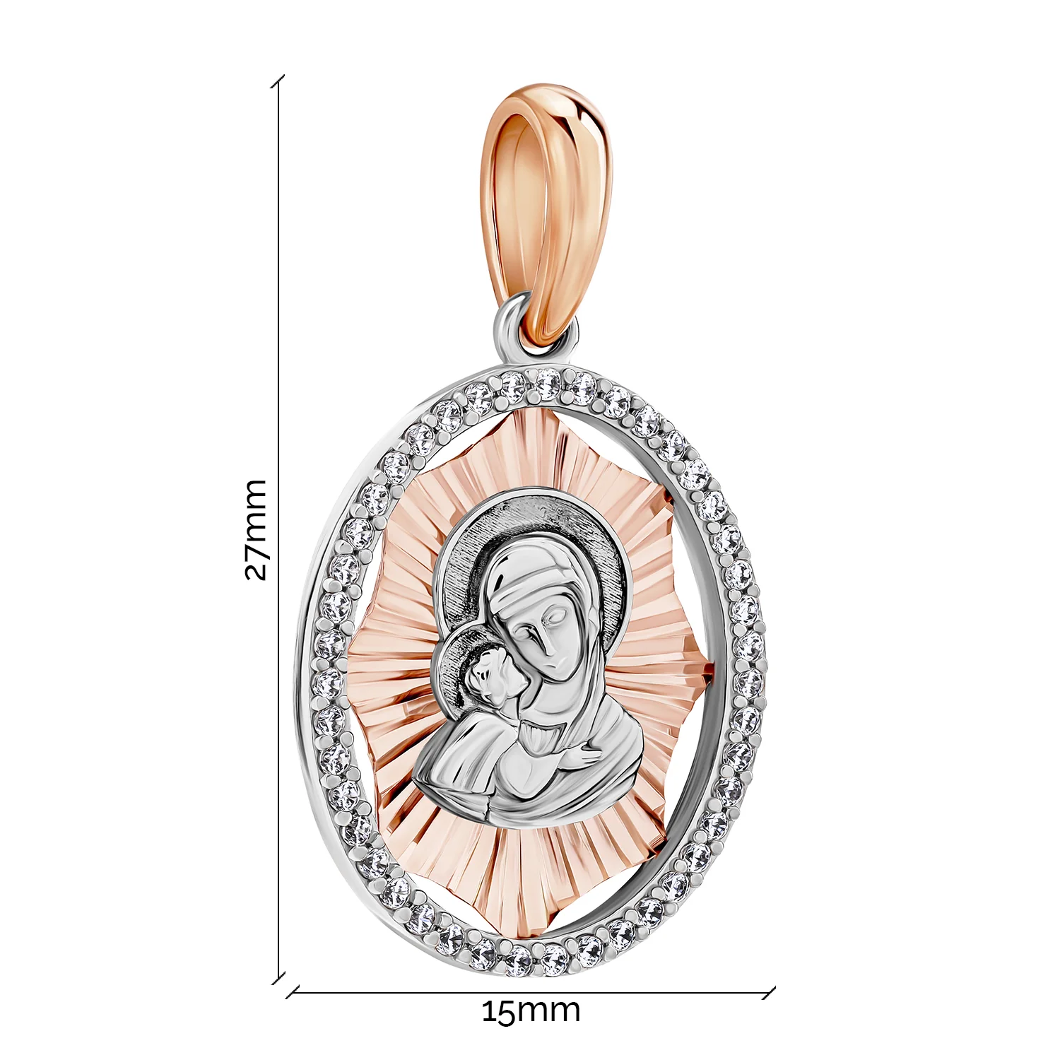 Ладанка у комбінованому золоті Богородица "Володимирська" з доріжкою фіанітів - 1999579