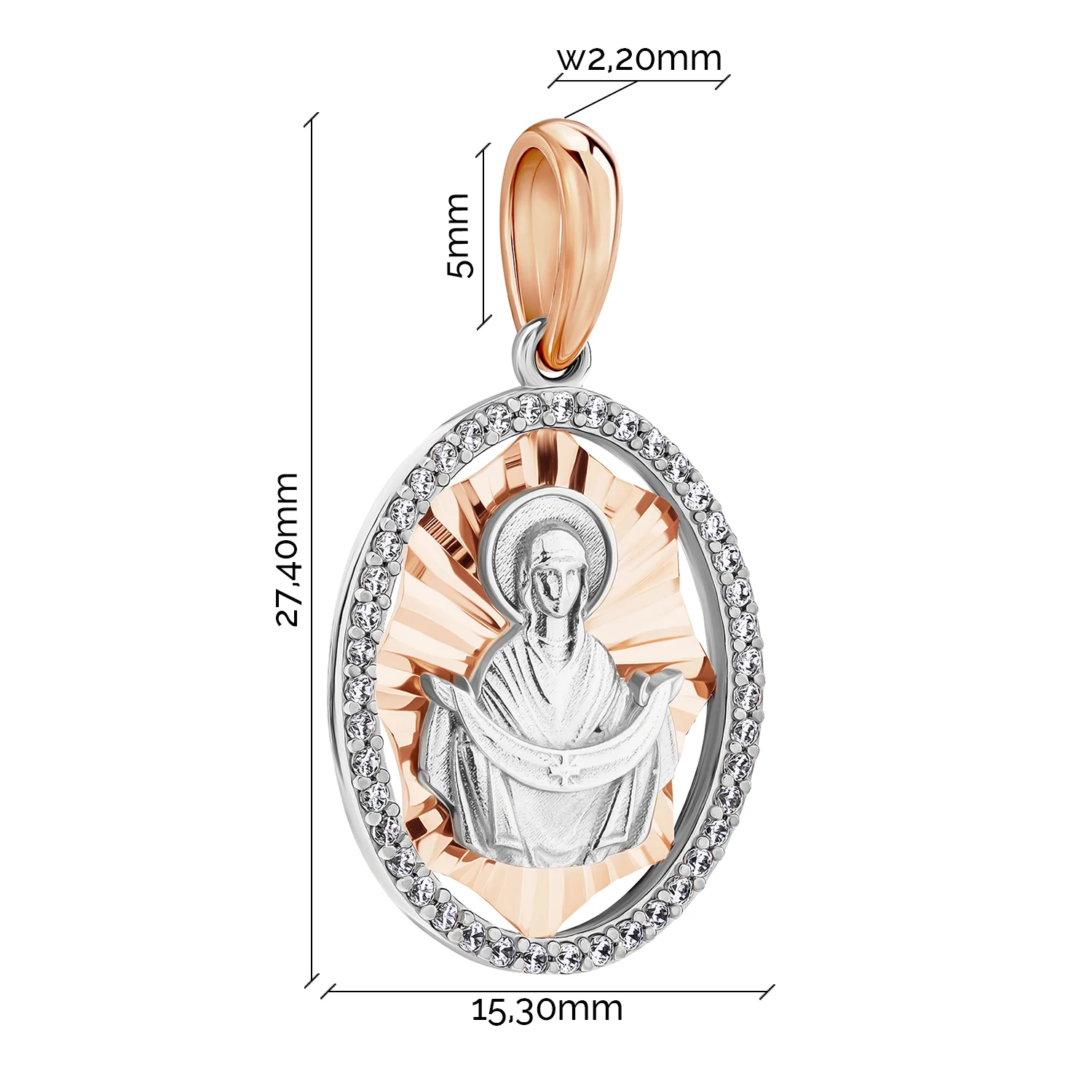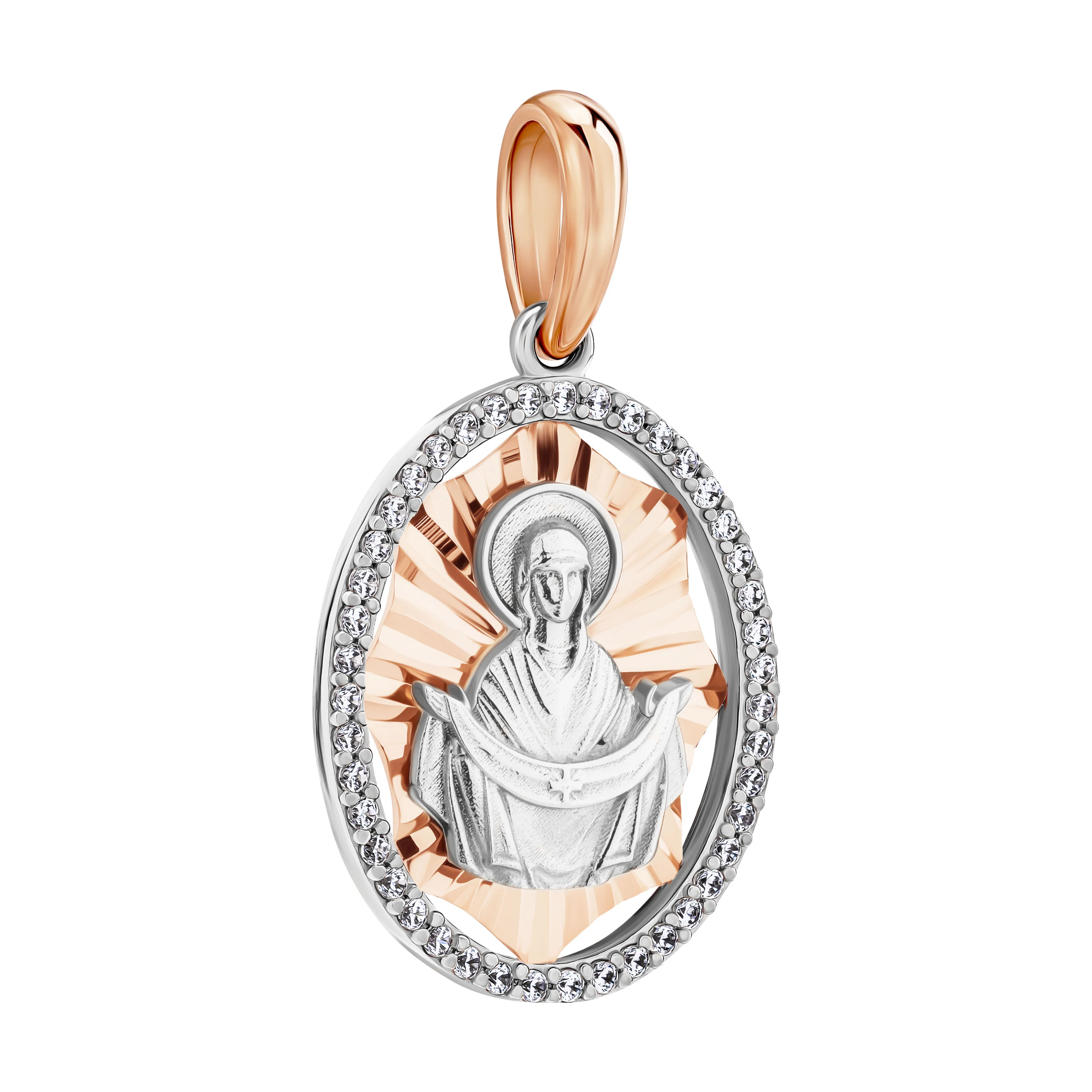 Ладанка у комбінованому золоті "Покрив Богородиці" з фіанітами - 2178166