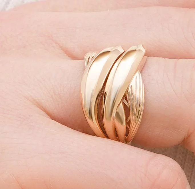 Каблучка "Кулі" в мінімалістичному стилі з комбінованого золота - 1878326