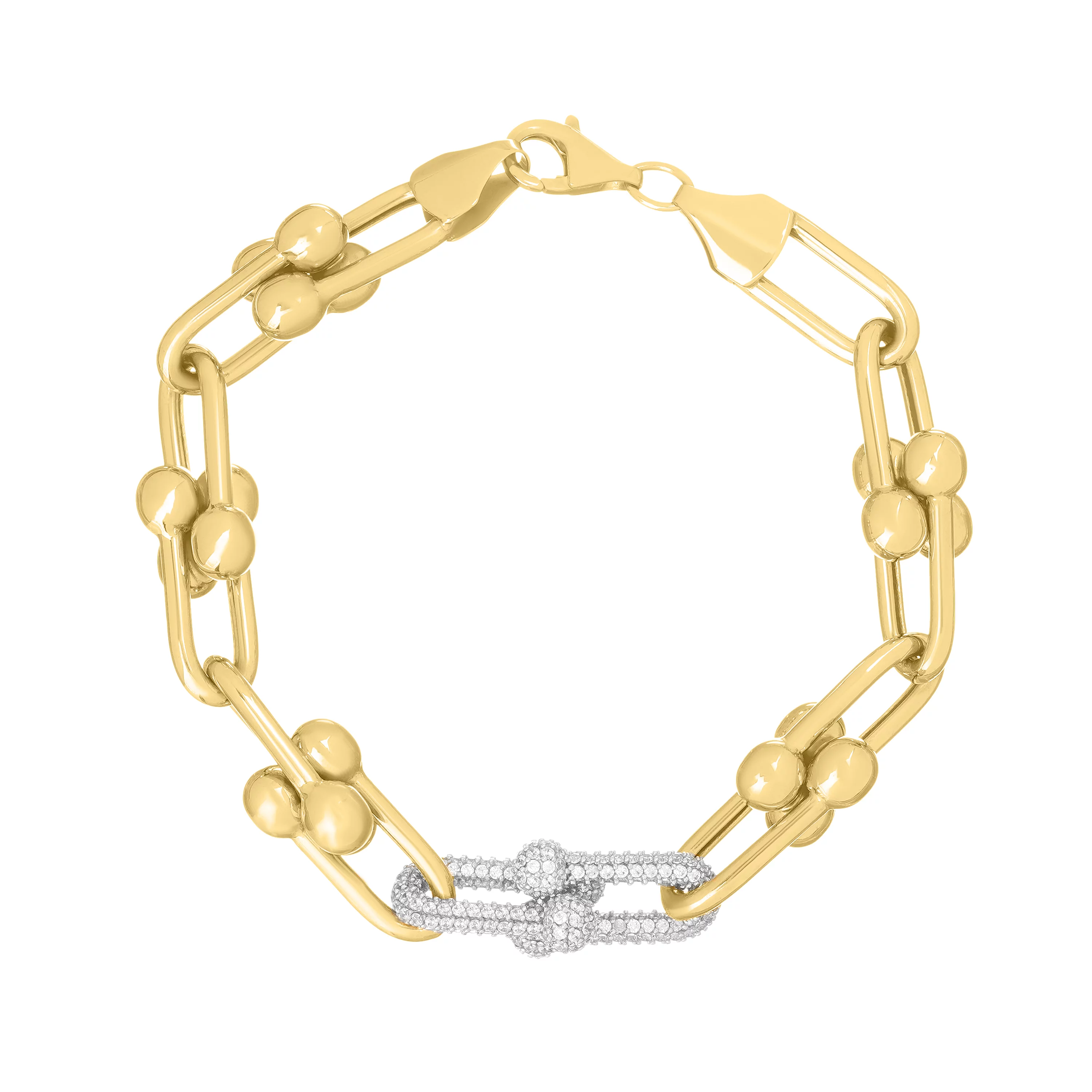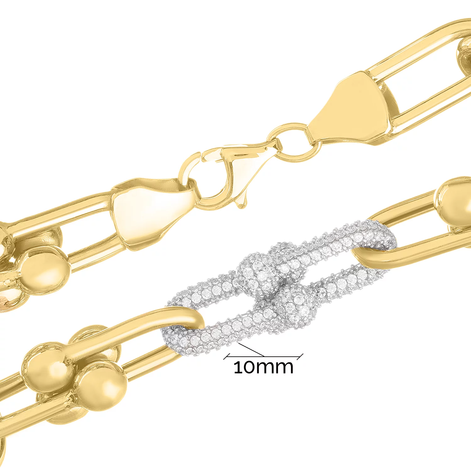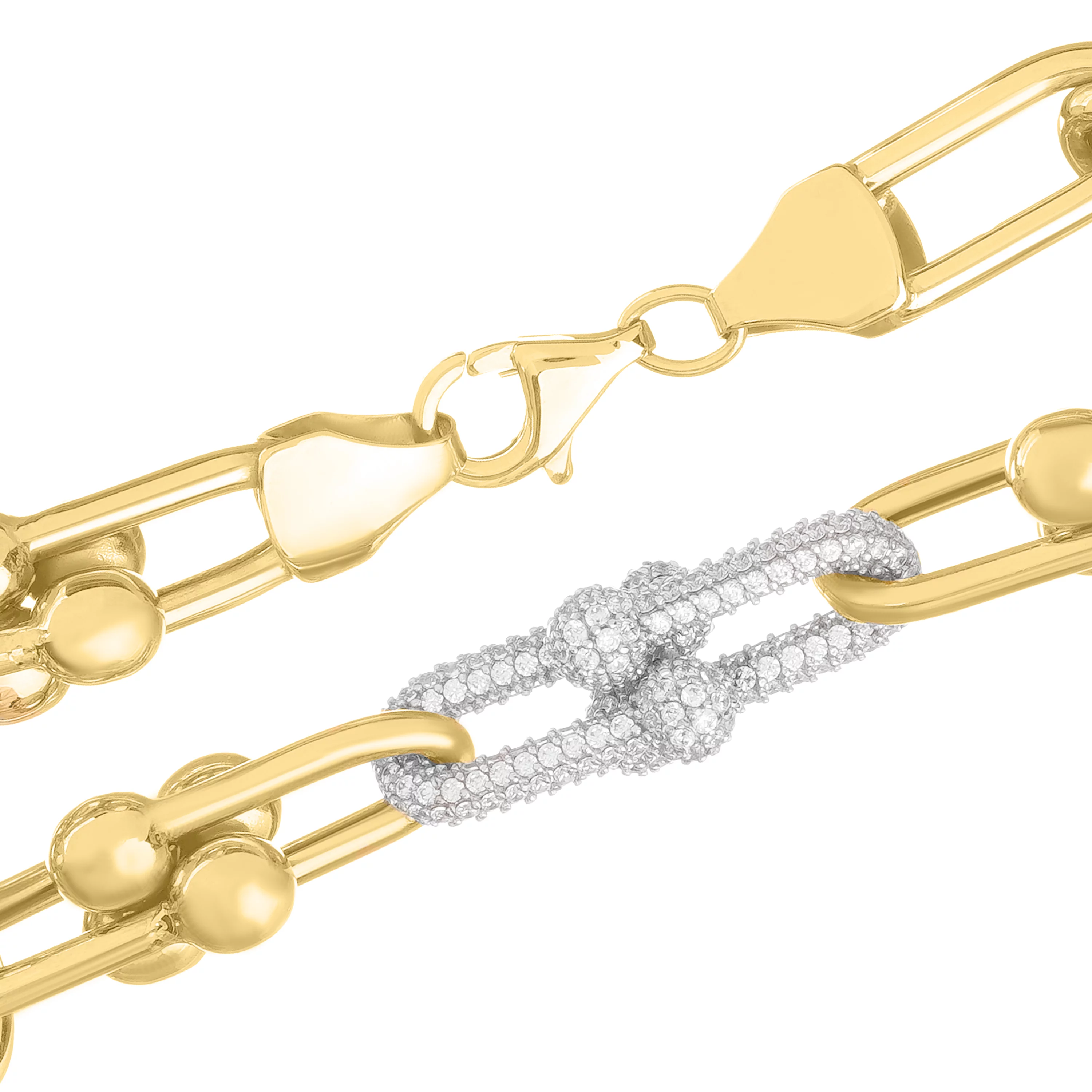 Браслет з комбінованого золота "Серце" з алмазною гранню, з подвійним плетінням і фіанітами - 1745554