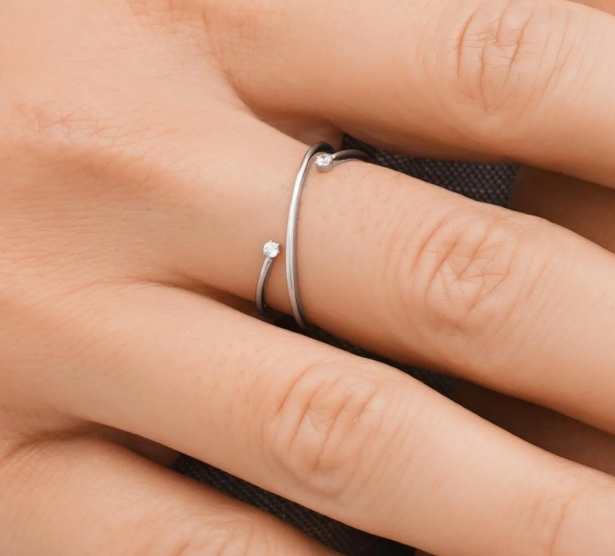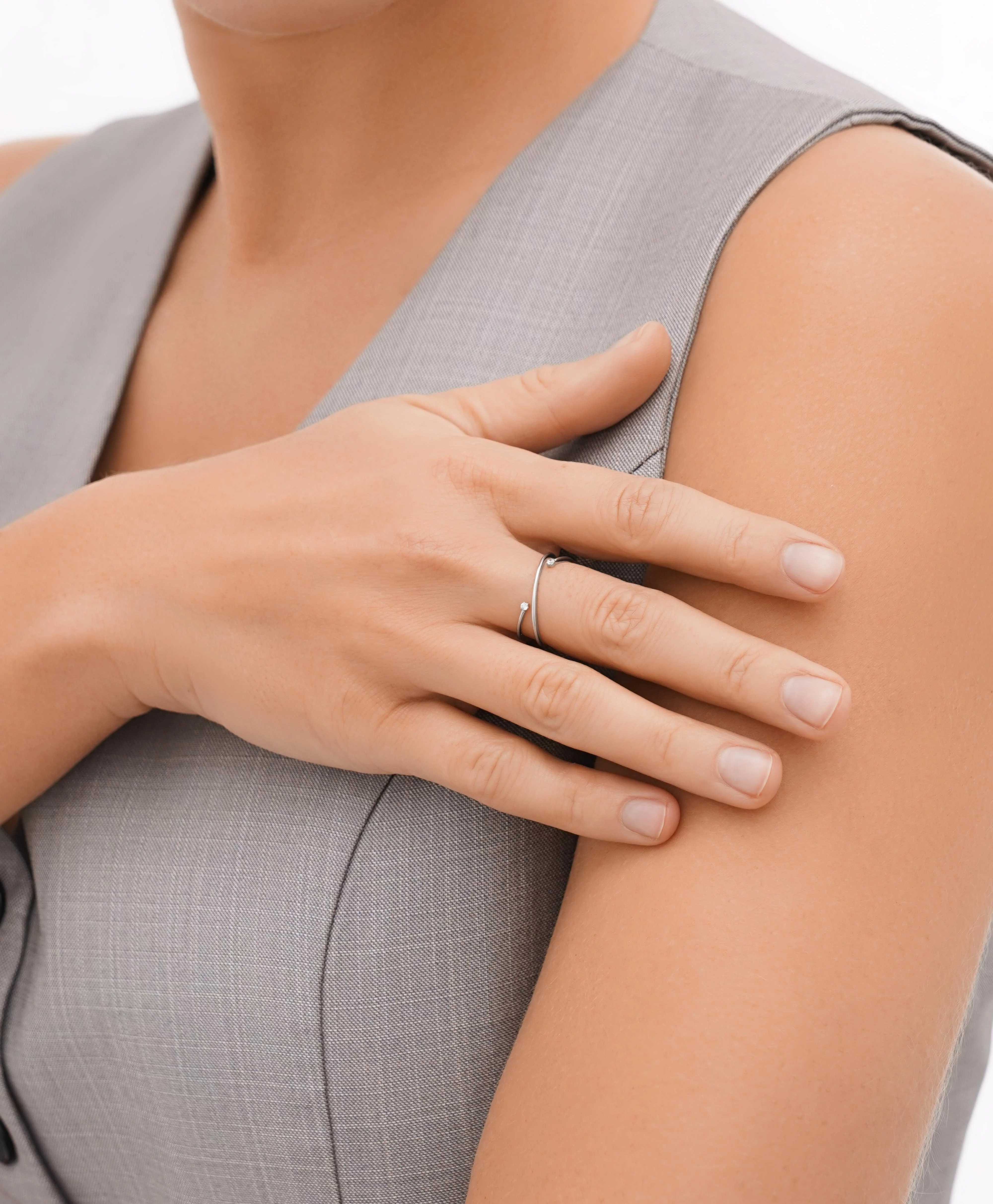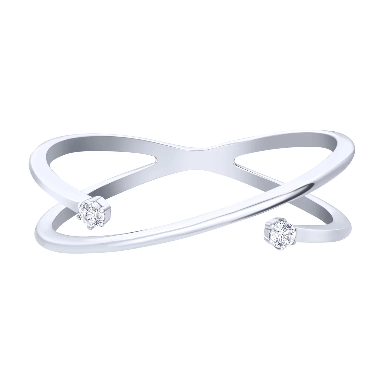 Мінімалістична каблучка з білого золота з фіанітами - 1613761