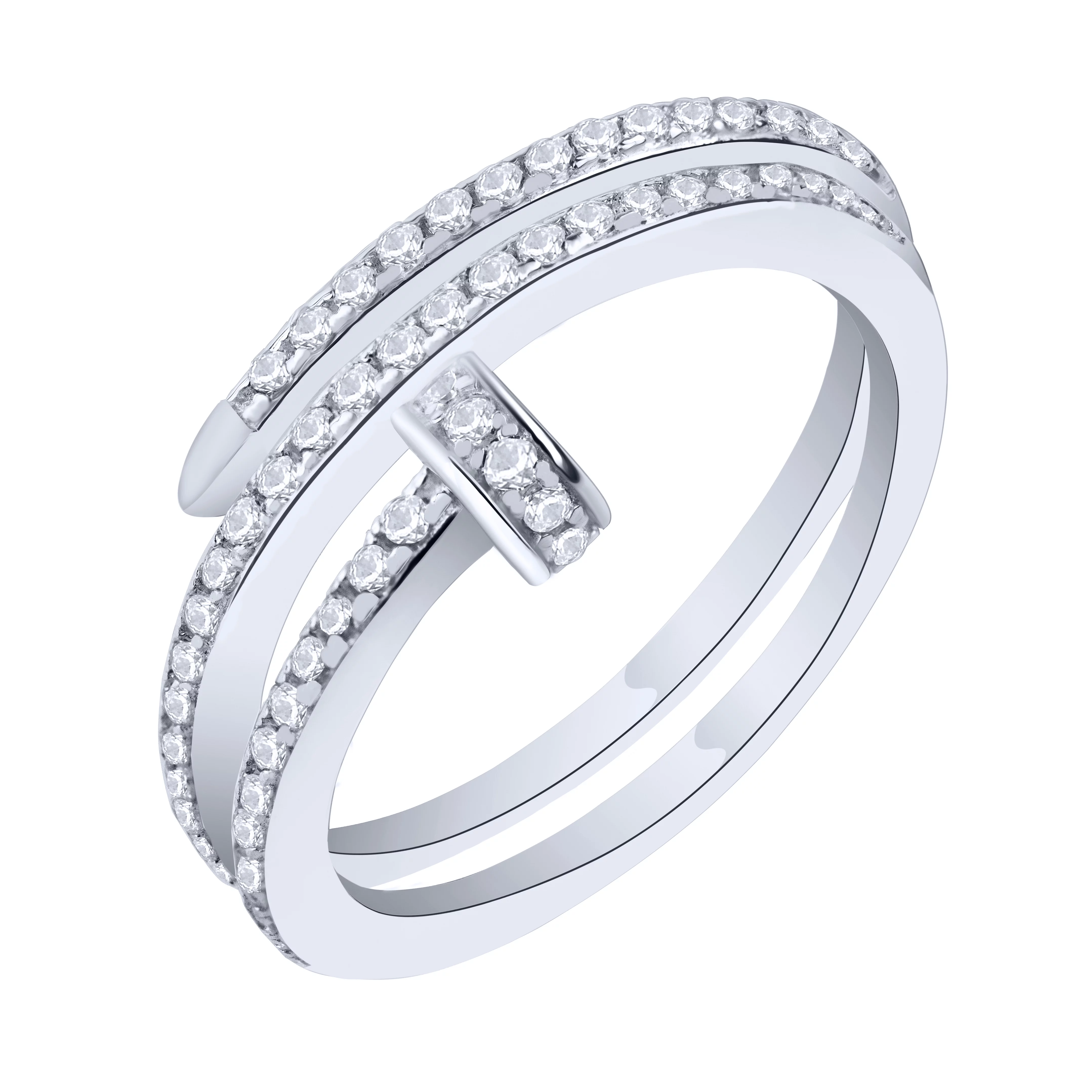 Модна каблучка "Цвях" у сріблі з фіанітами - 1929455