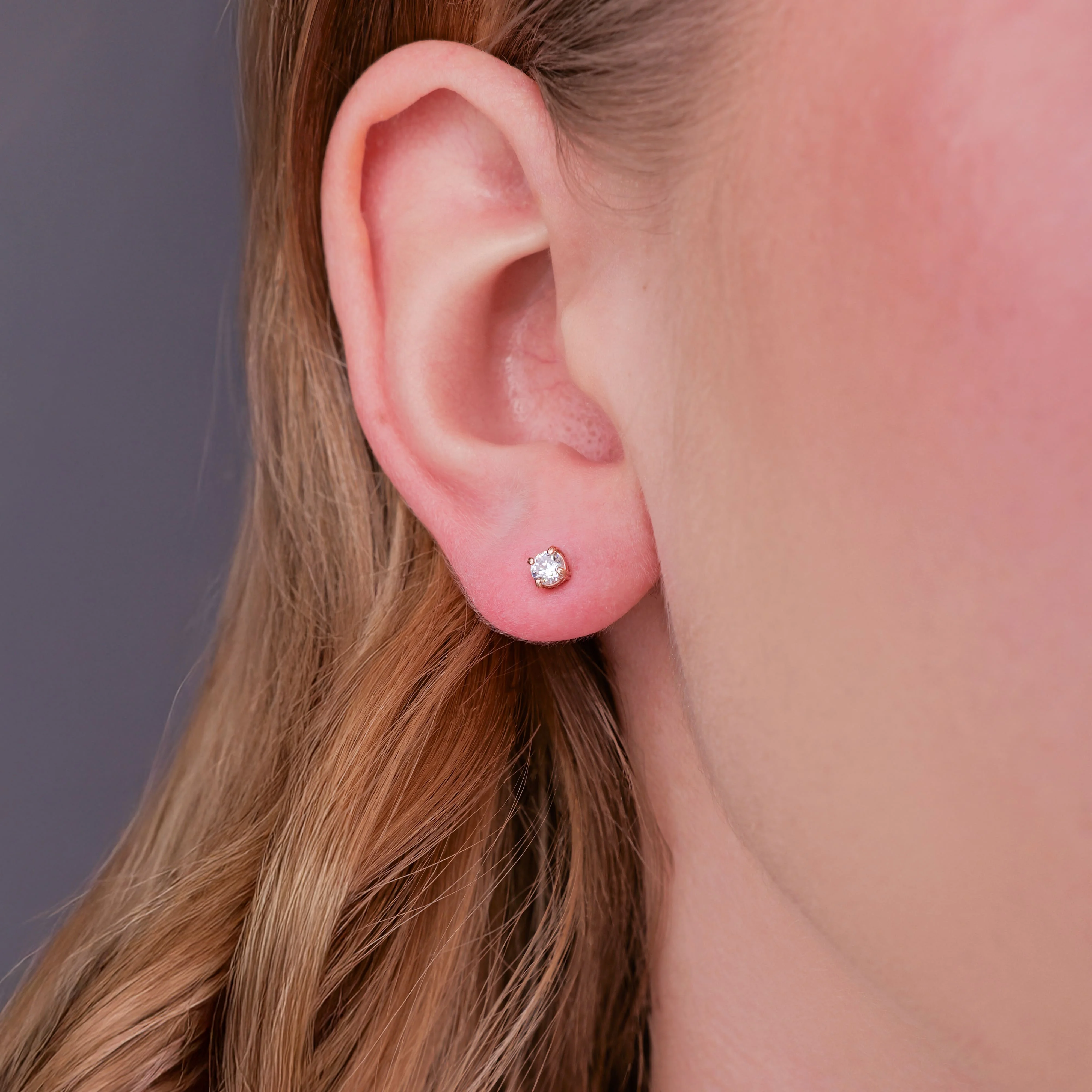 Моно сережка-гвоздик з фіанітом у червоному золоті - 1992802