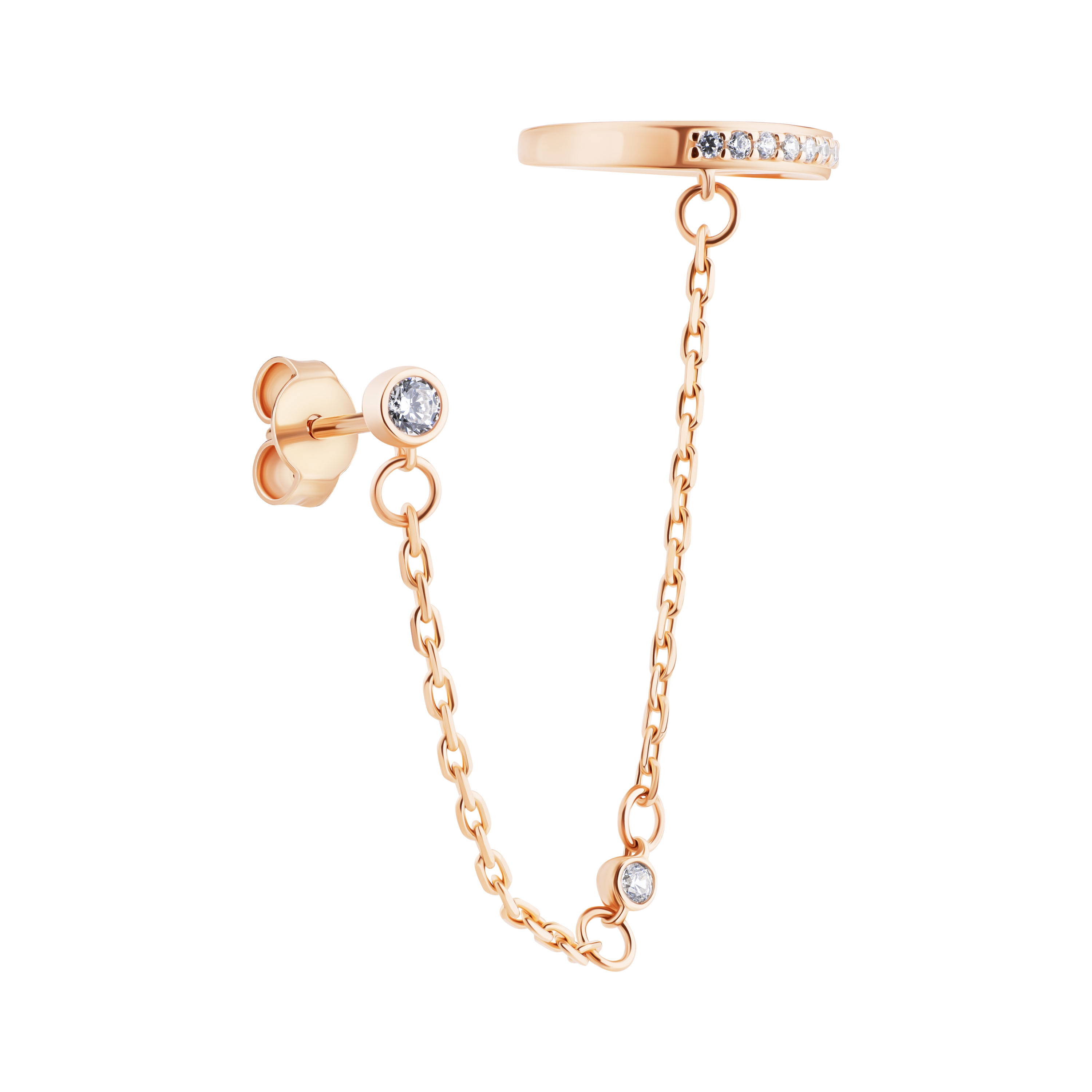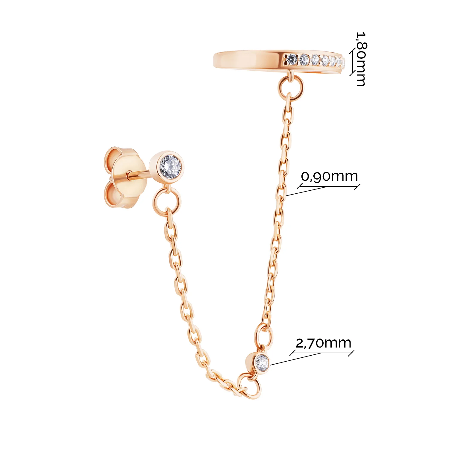 Моносережка-гвоздик з кафою з червоного золота з фіанітами - 2147437
