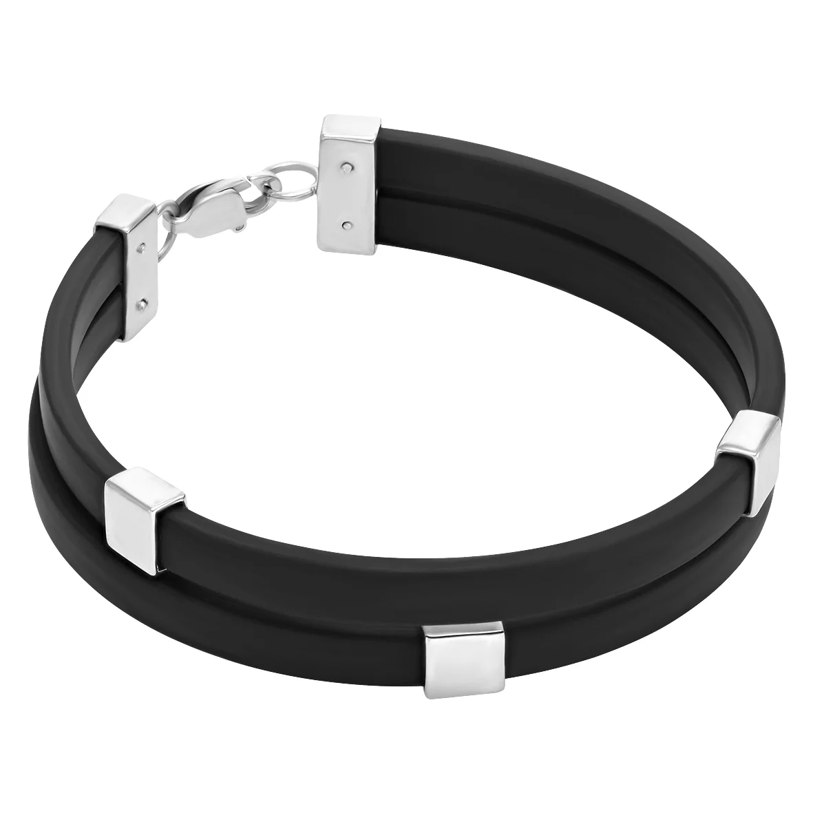 Чоловічий браслет зі срібними вставками та каучуком - 1541404