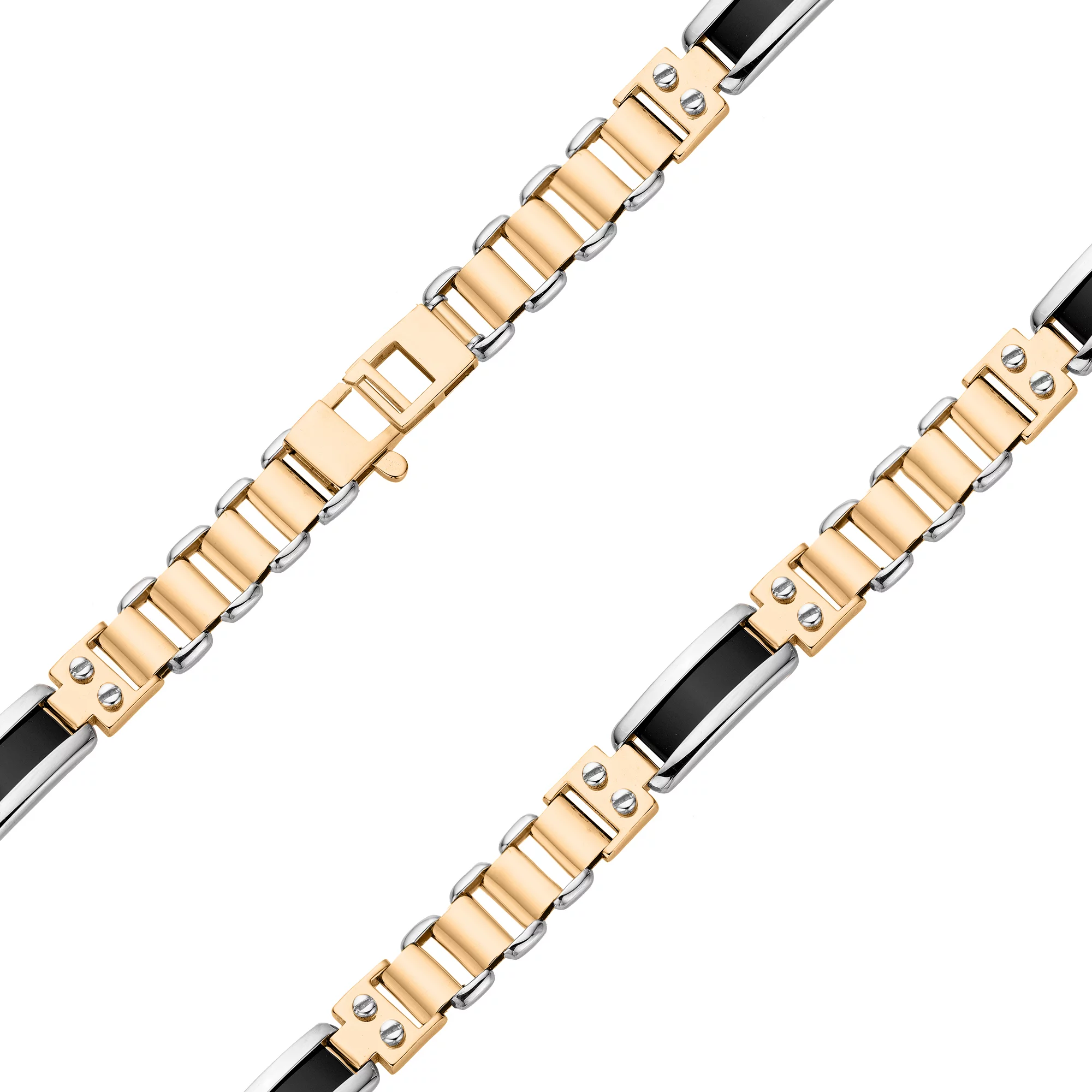 Браслет у комбінованому золоті з оніксом "Love" плетіння ролекс - 1602889
