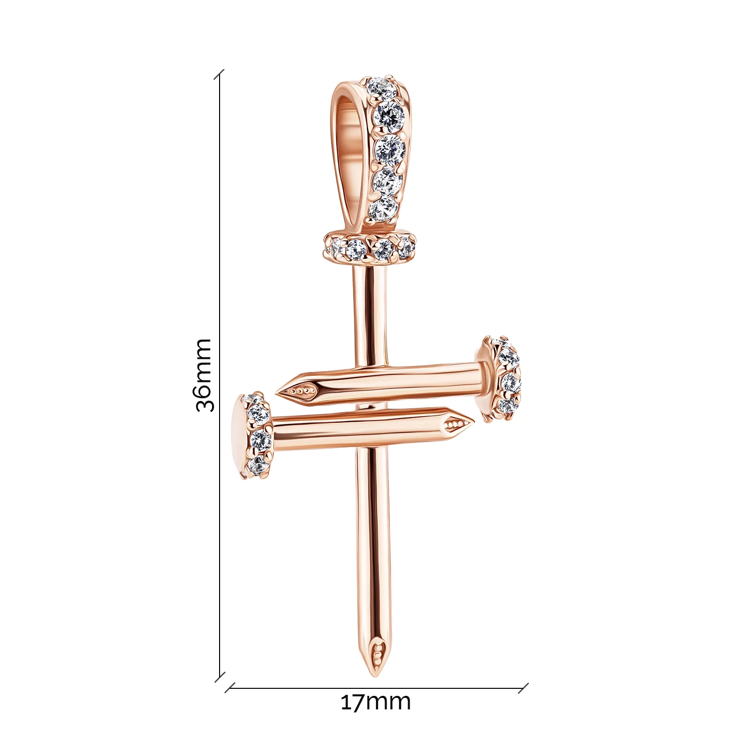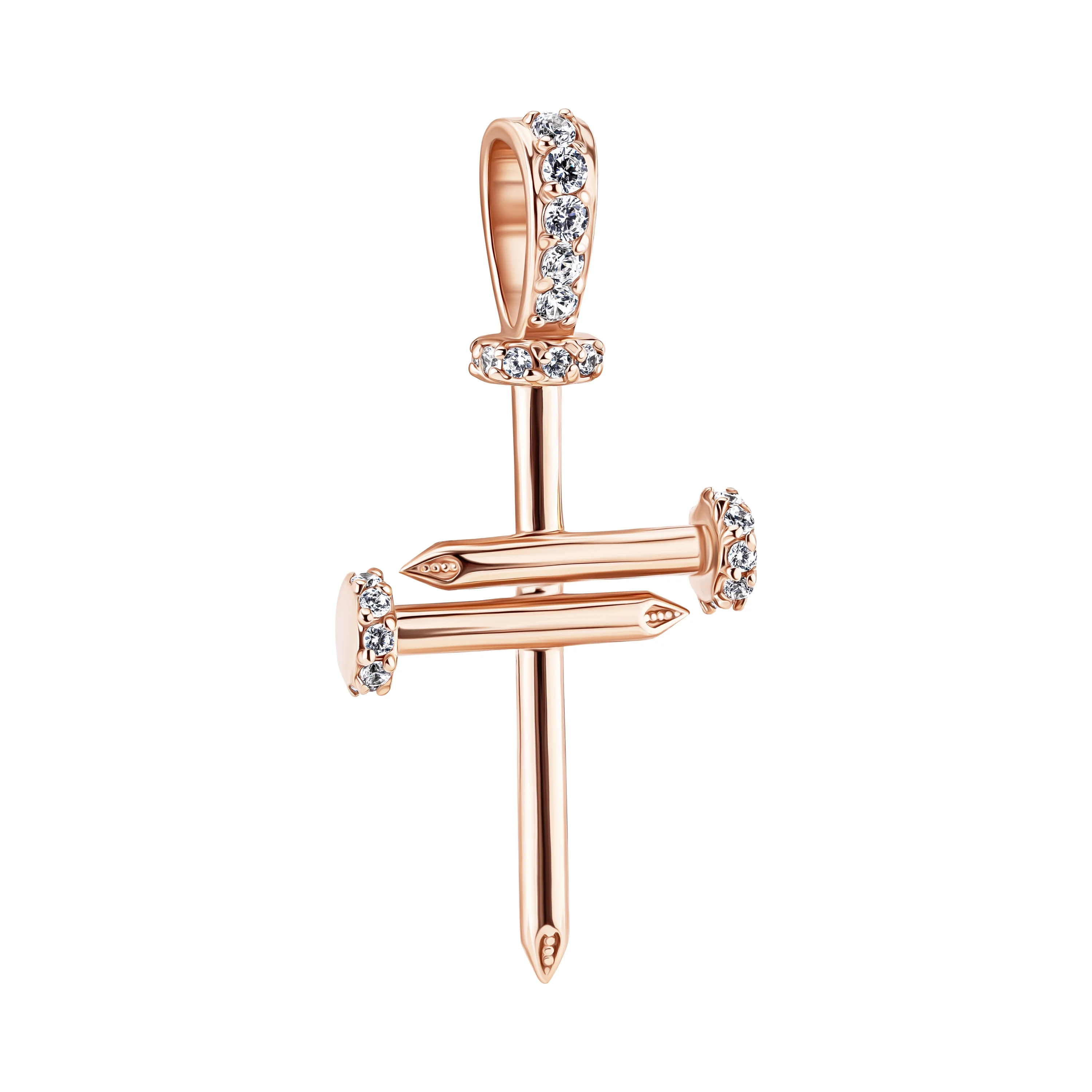 Незвичайний декоративний хрестик "Цвях" в червоному золоті з фіанітами - 2035601