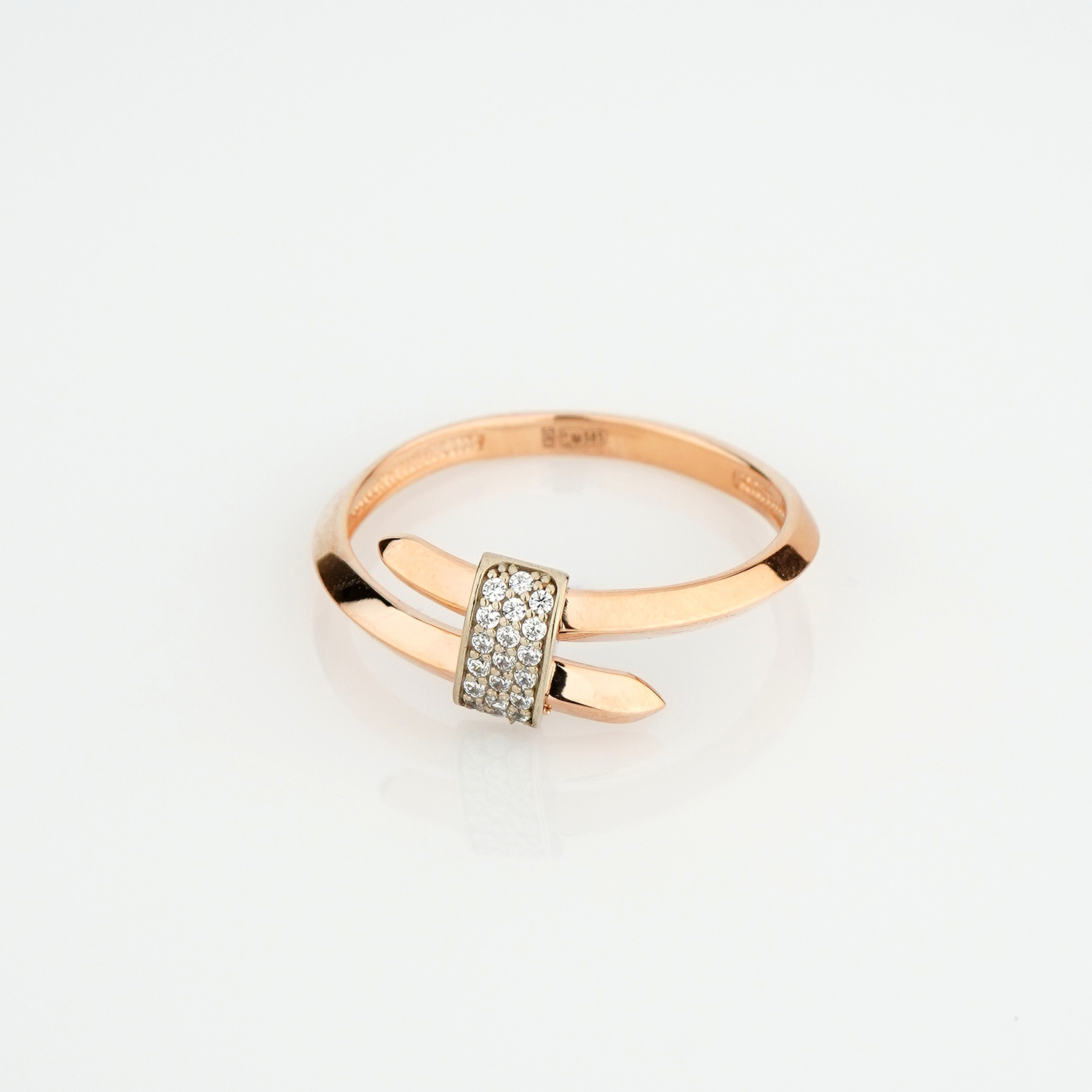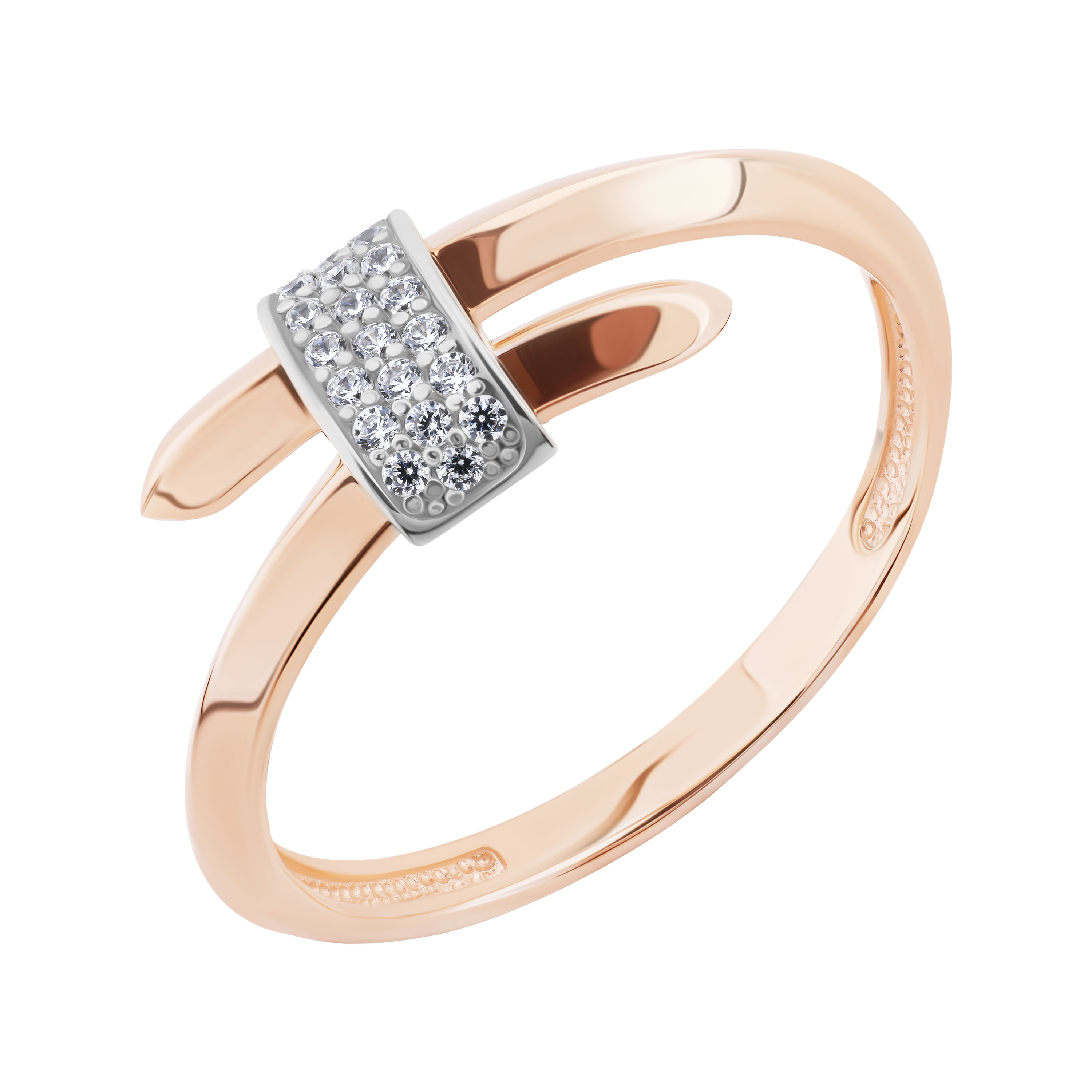Незамкнена каблучка у комбінованому золоті з розсипом фіанітів - 2142863