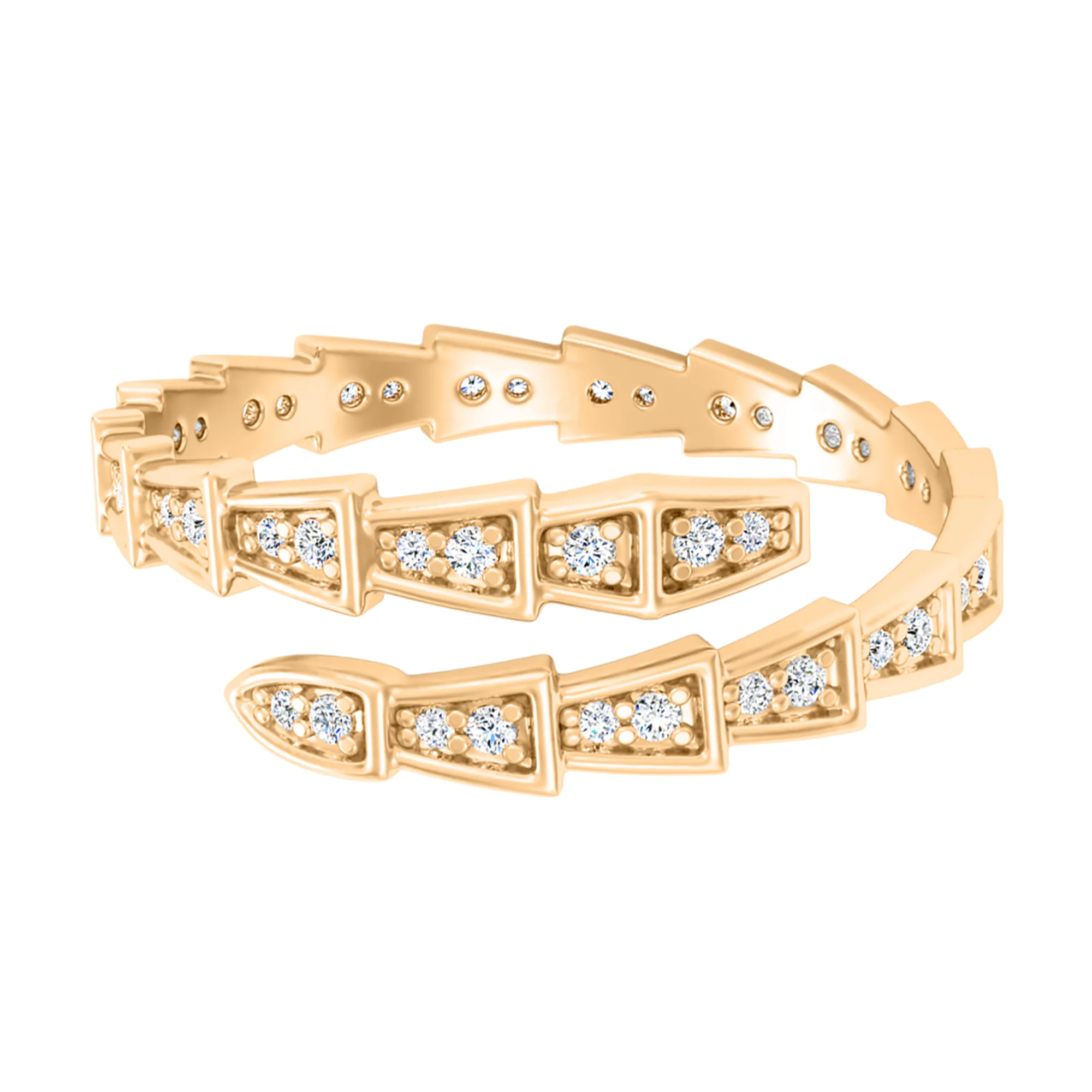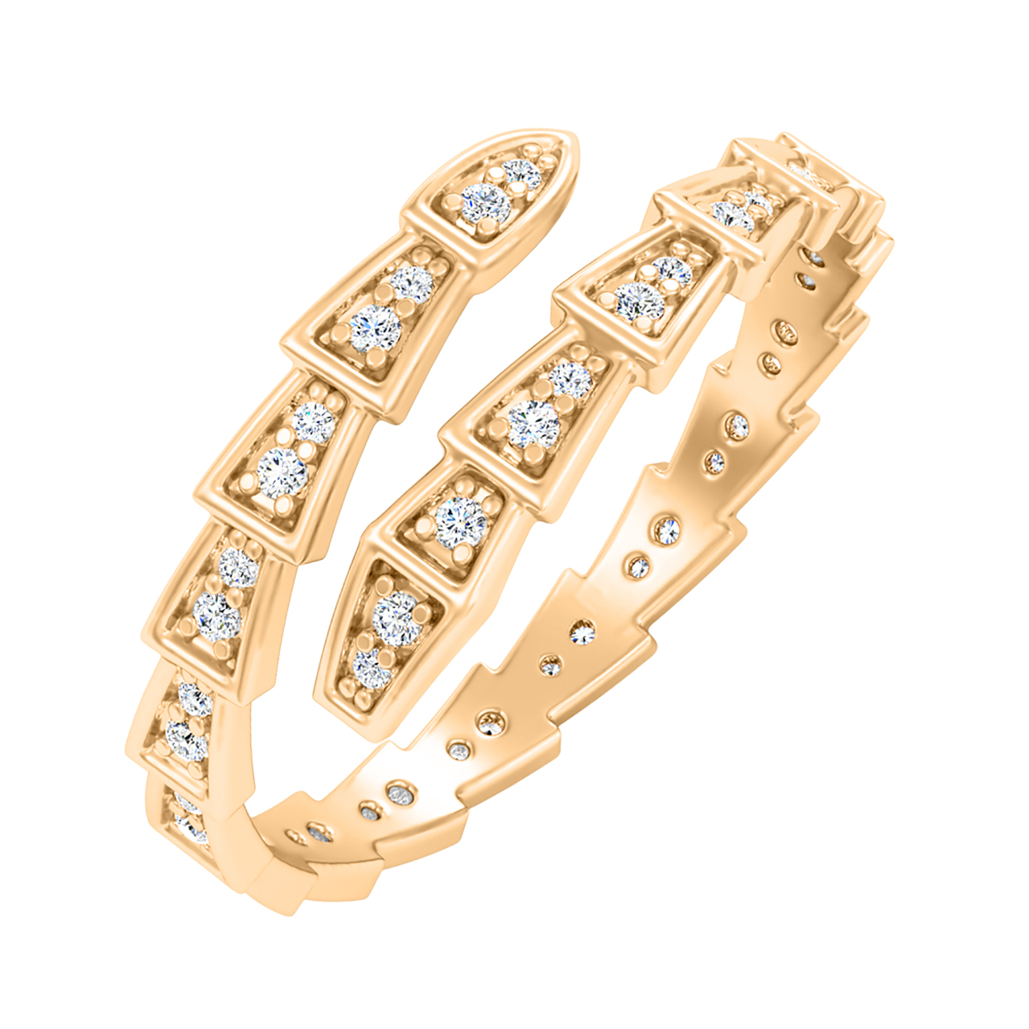 Незамкнена каблучка "Змія" із червоного золота з фіанітами - 2125752