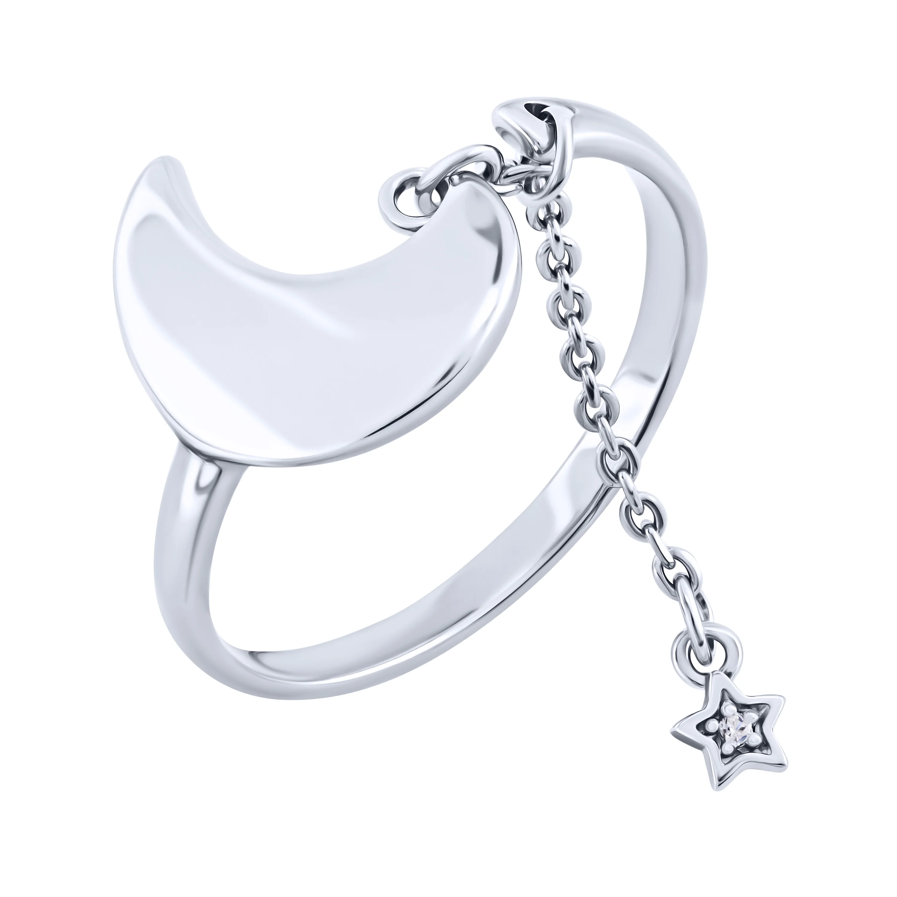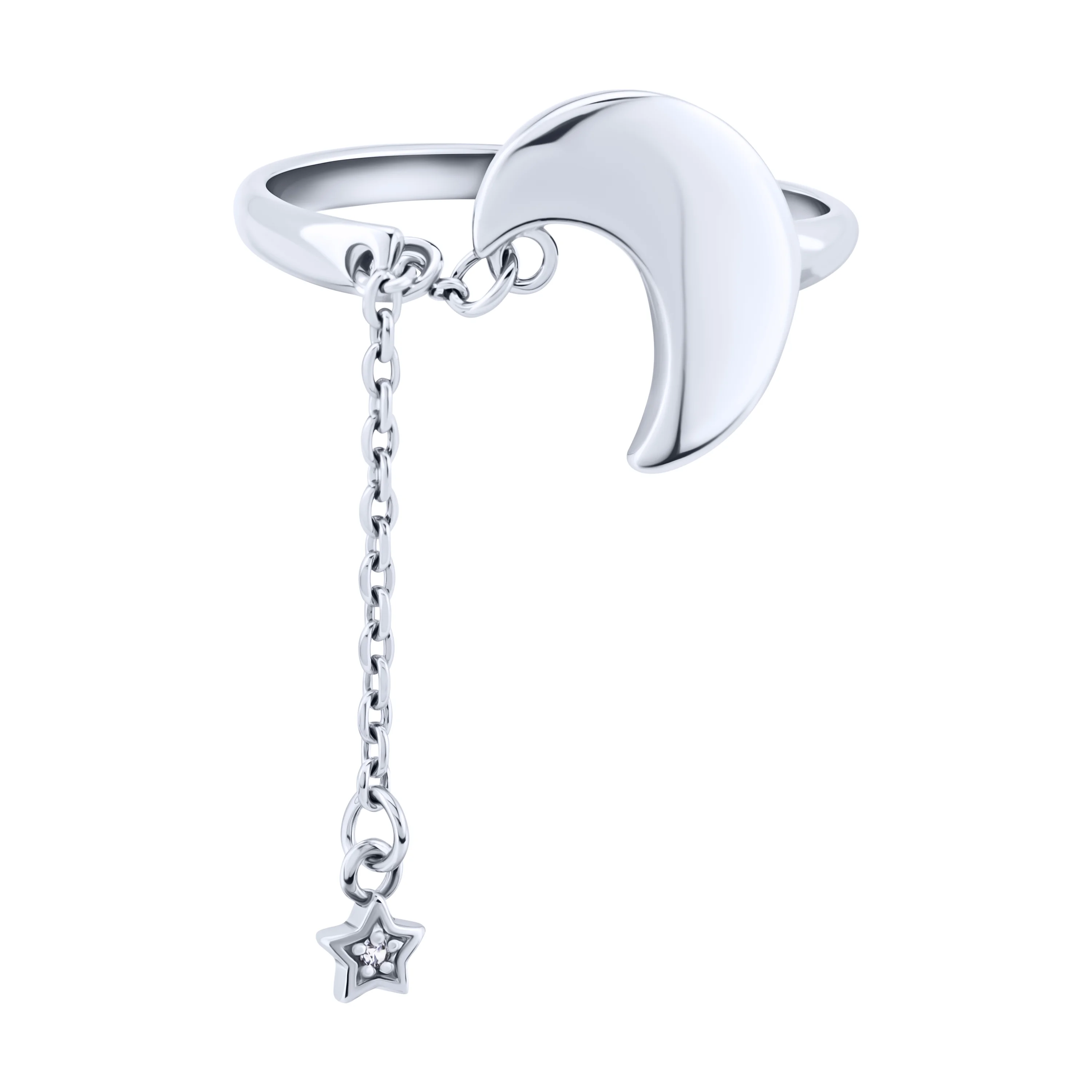 Срібна каблучка "Місячне сяйво" з ланцюжком, фіанітом та підвісом - 2088857
