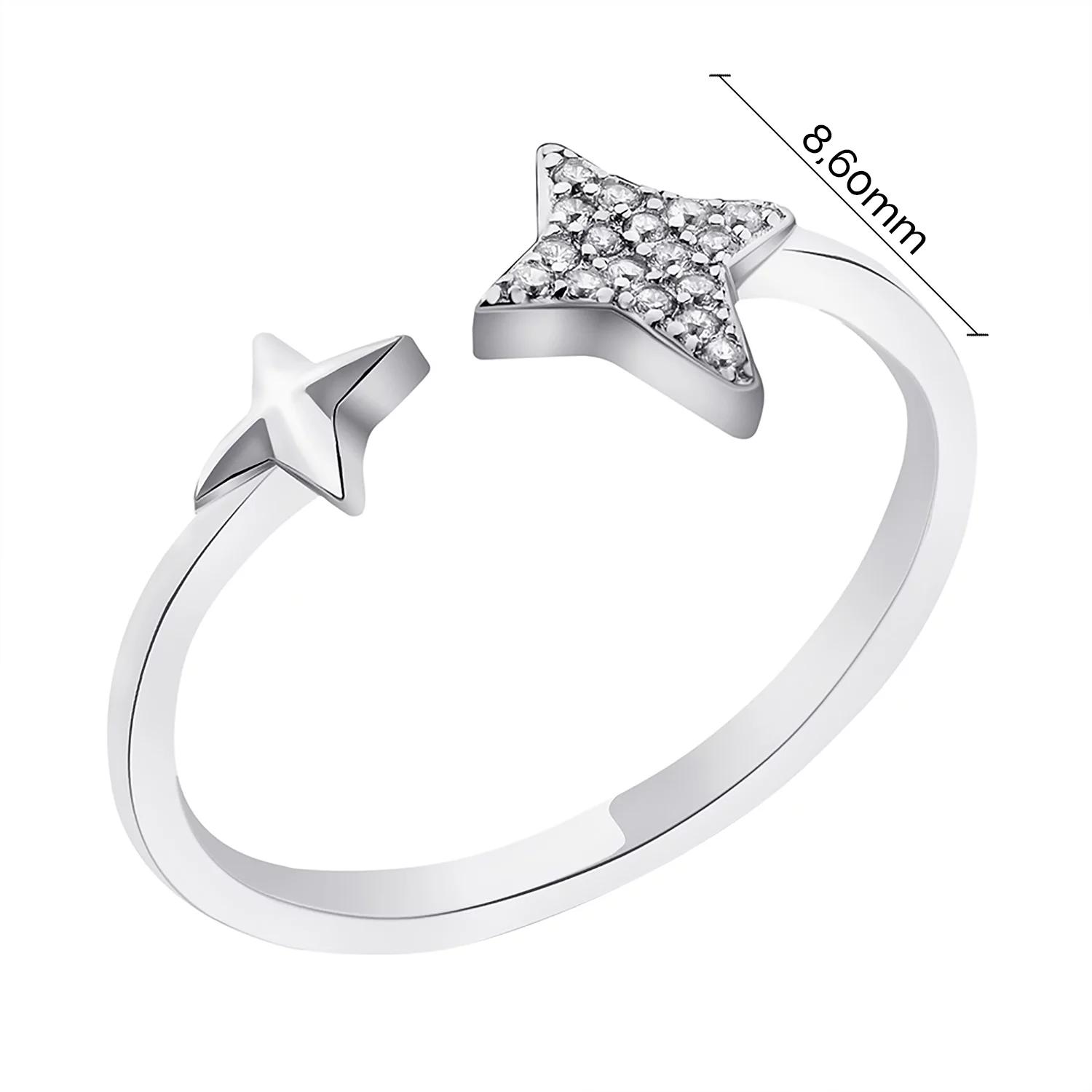 Незамкнена срібна каблучка "Зірочки" з фіанітами - 1562874