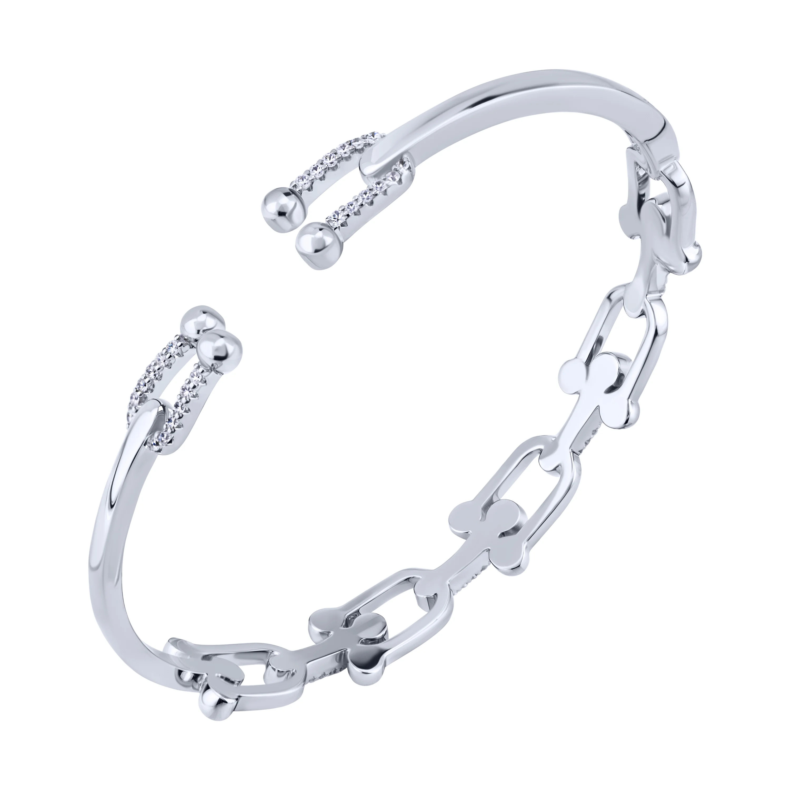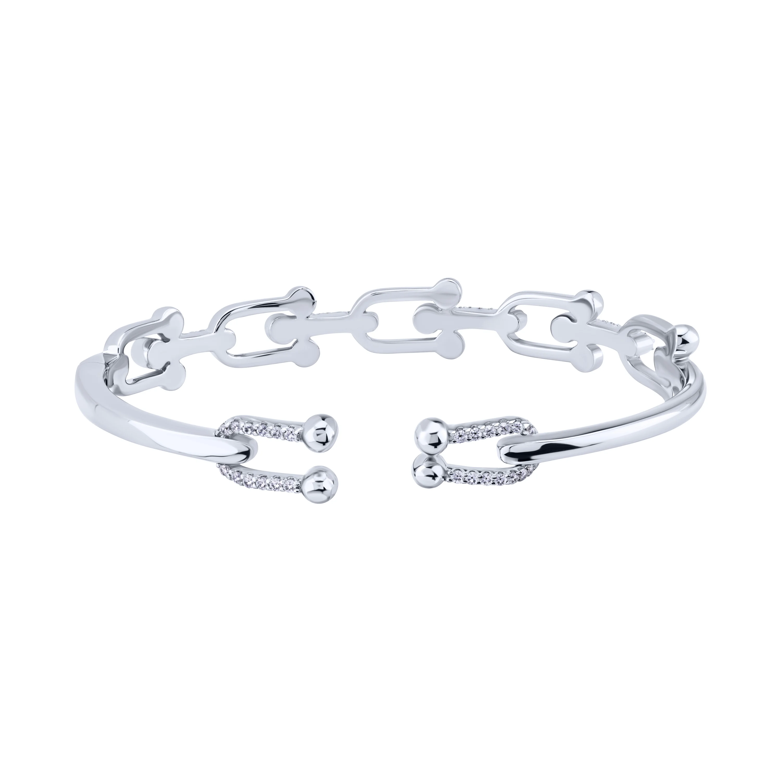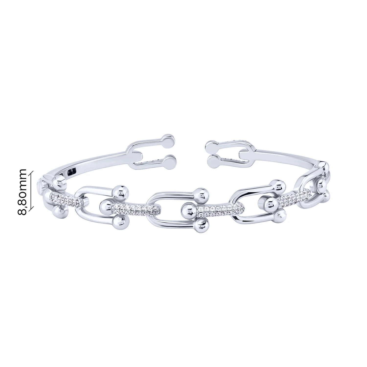 Незамкнений жорсткий браслет "Ланки" з фіанітами в сріблі - 2088981