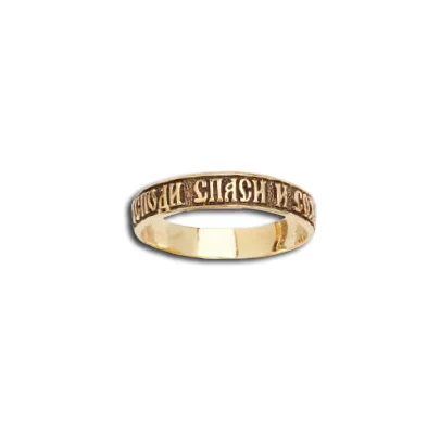 Перстень срібний "Спаси і збережи" з золотою накладкою та чорнніням - 1446919