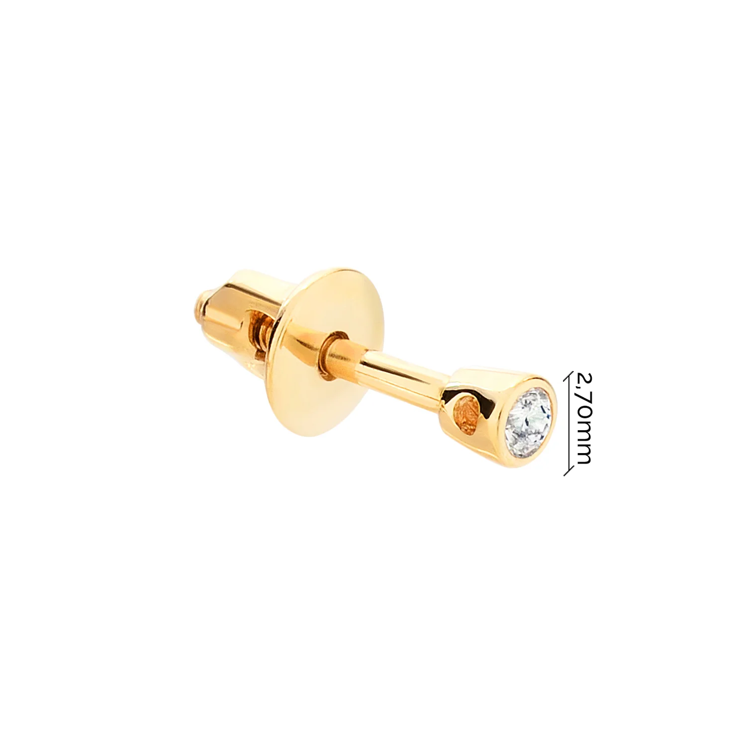 Одна сережка-гвоздик з лимонного золота з фіанітом - 1389081