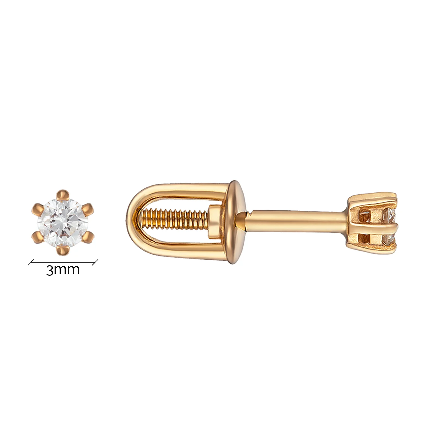 Сережки-гвоздики у стилі мінімалізм з червоного золота з діамантом - 1824423