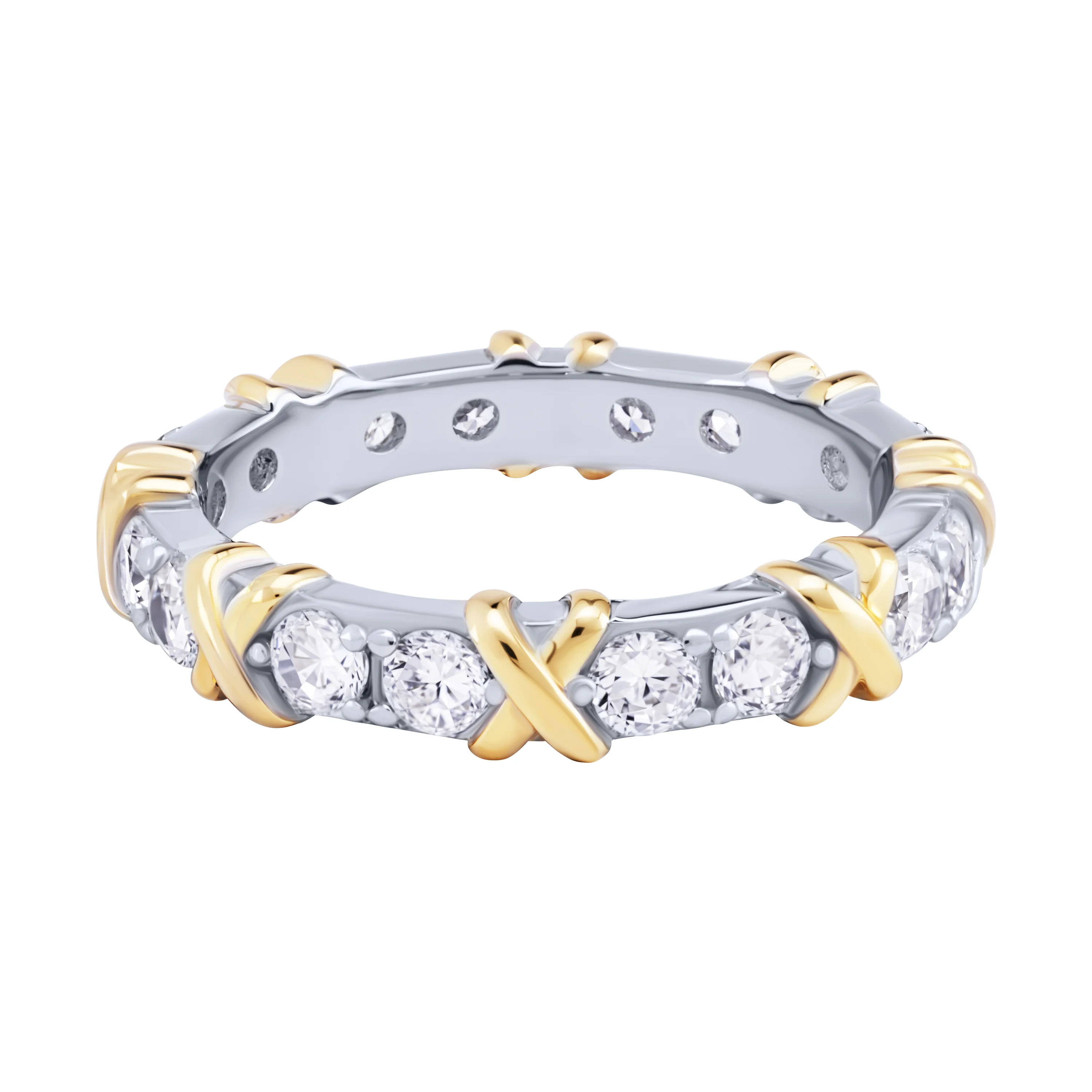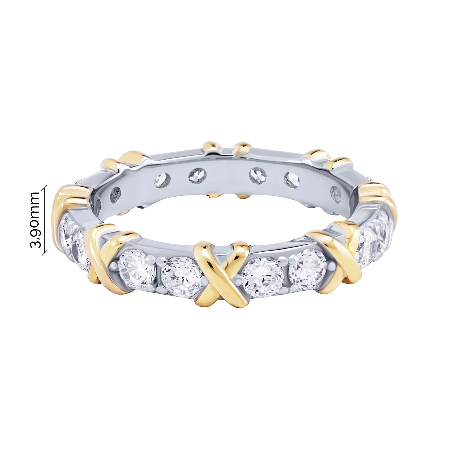 Оригінальна срібна каблучка з фіанітами та жовтим родіюванням - 2091073