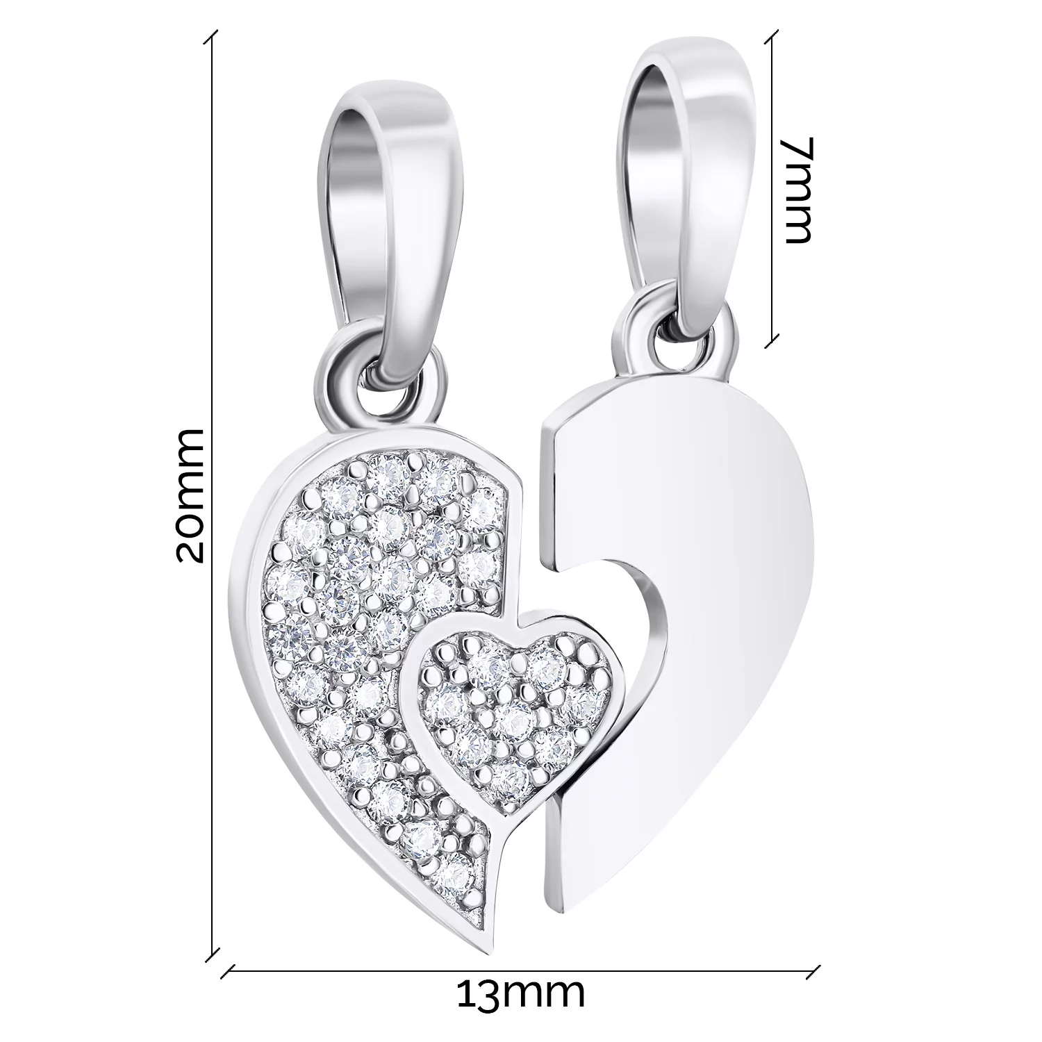 Парний підвіс "Закохані Серця" зі срібла з фіанітами - 1546054