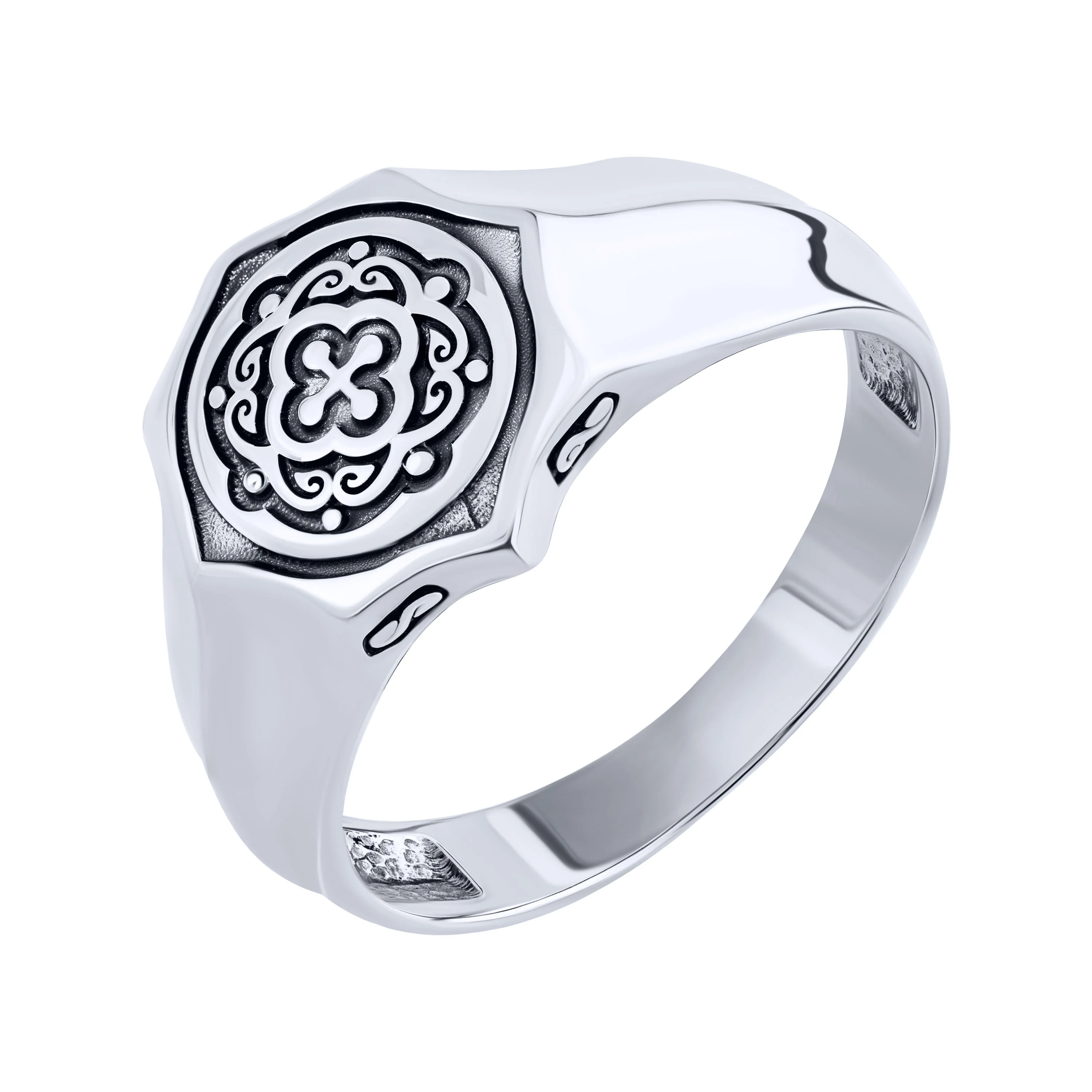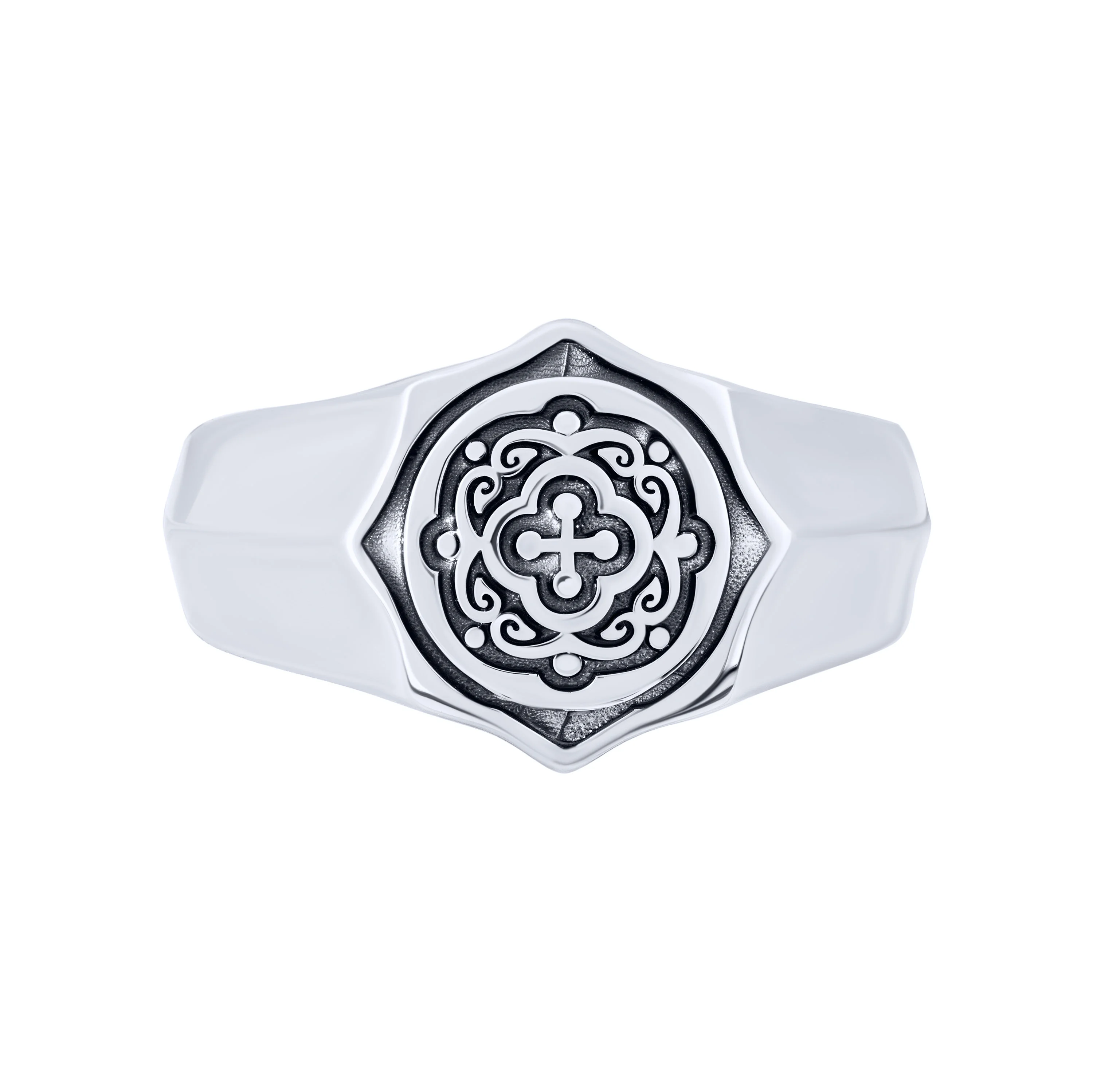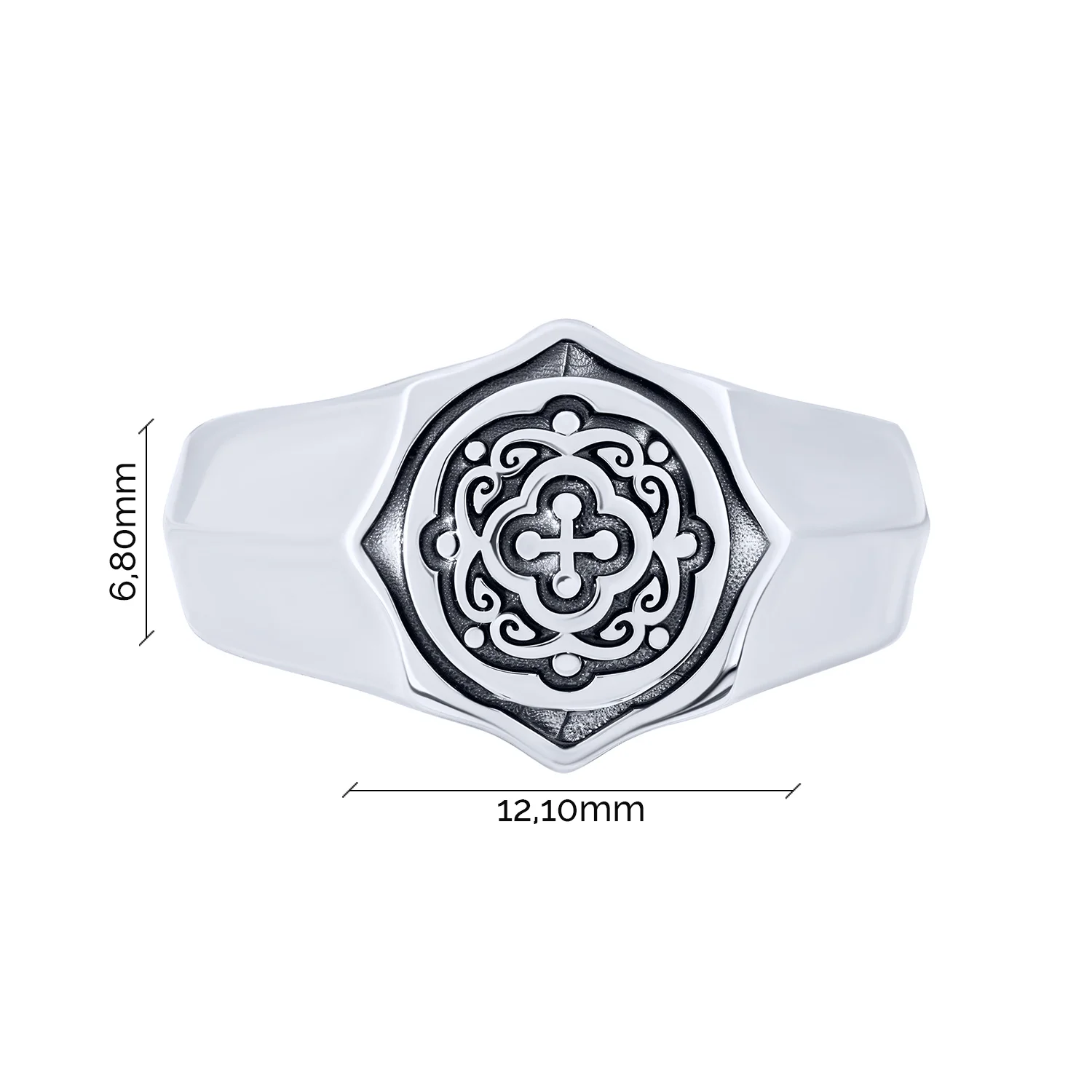 Перстень-печатка в сріблі з хрестиком та чорнінням - 2104570