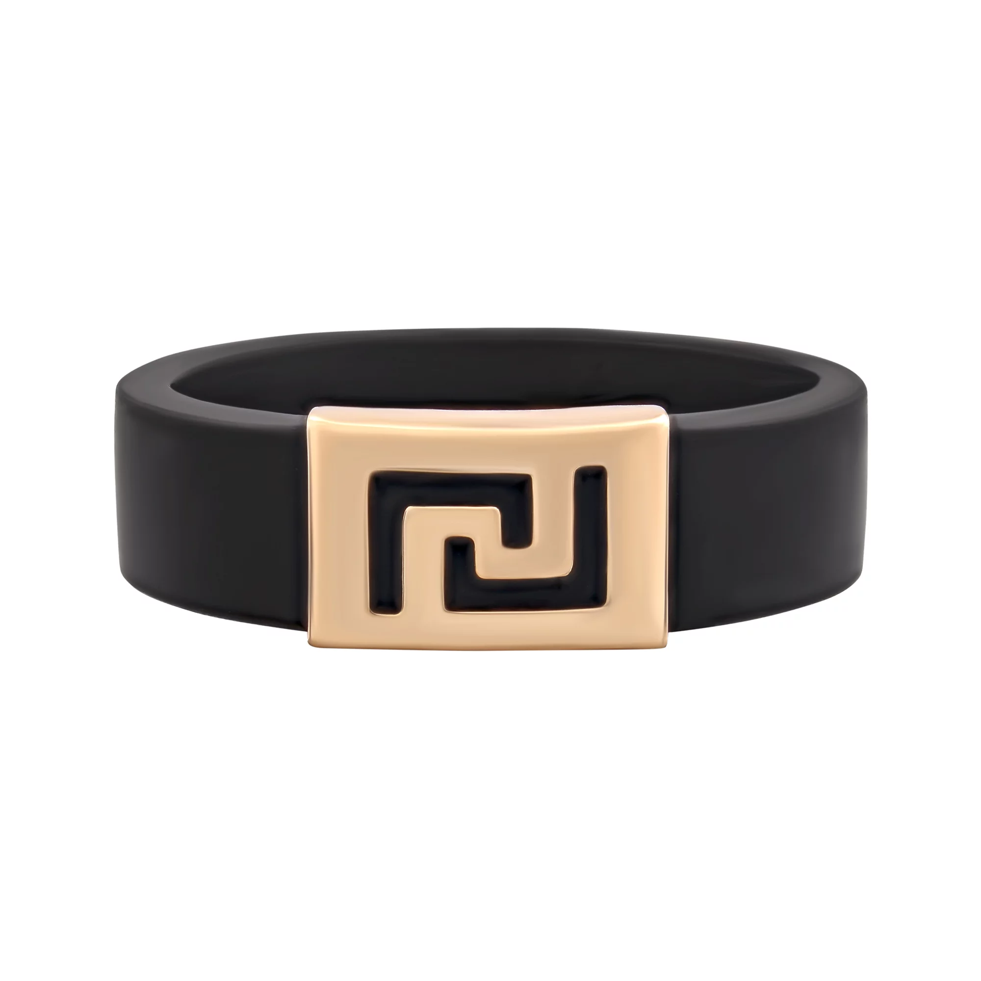Каучуковий перстень із золотою вставкою — універсальна прикраса, її можуть носити як жінки, так і чоловіки. На руці така каблучка має оригінальний вигляд та привертає увагу чорним кольором матеріалу, з якого вона виготовлена. Вставка з дорогоцінного металу 585 проби з геометричним візерунком змінює виріб та прикрашає його, створюючи вайб розкоші та шляхетності. Каблучка може бути як окремим елементом образу, так і доповненням до сережок, браслета, підвіски. Така прикраса стане стильним подарунком як на честь свята, так і без нього.