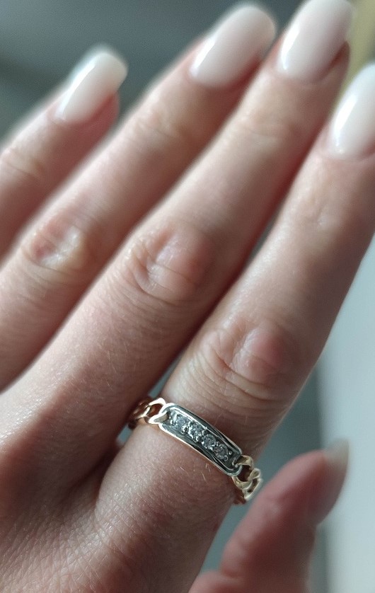 Перстень-печатка в комбінованому золоті з доріжкою з фіанітів та емаллю - 1874594