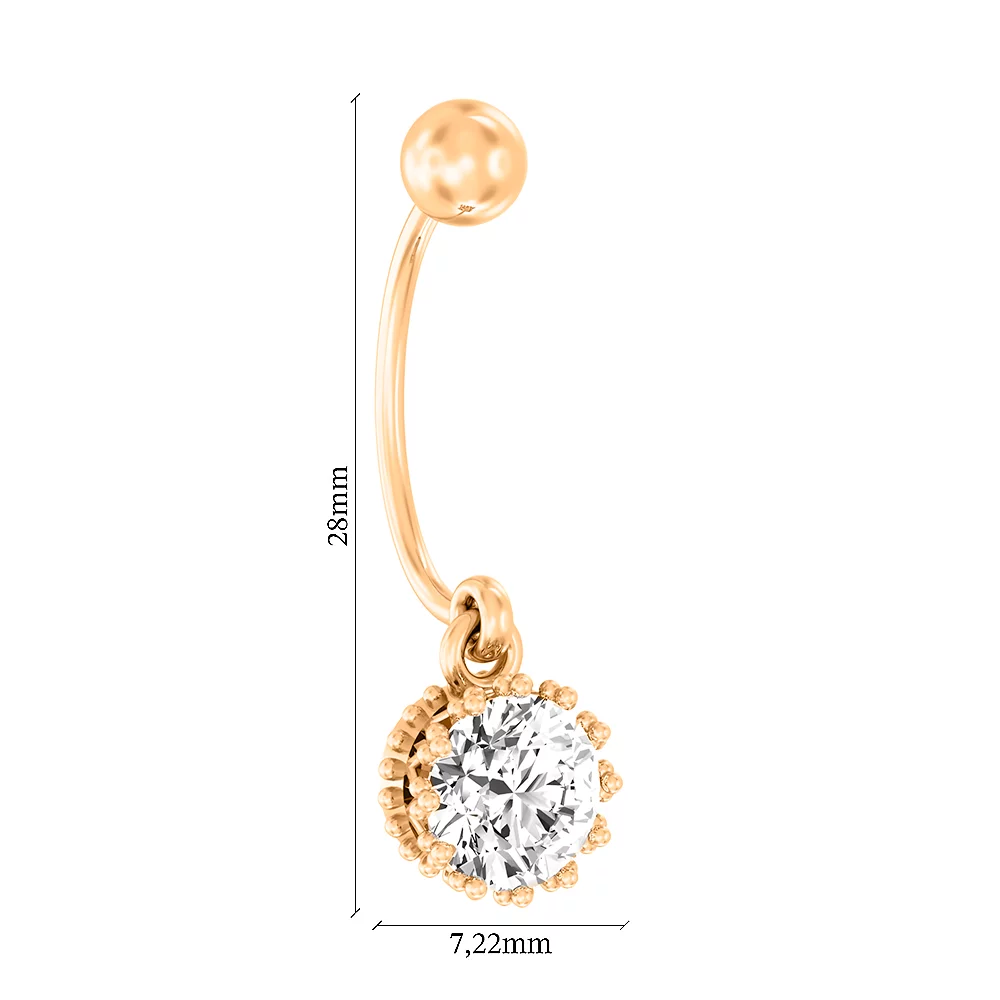 Пірсинг у пупок з підвісом з червоного золота з фіанітом "Корона" - 964419