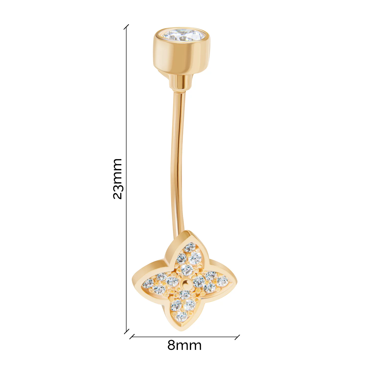 Пірсинг у пупок з червоного золота "Конюшина" з розсипом фіанітів - 1812910