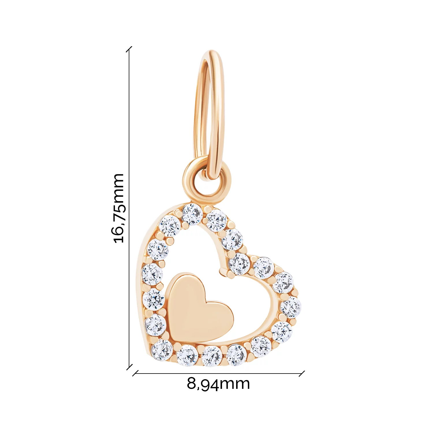 Підвіс "Два серця" у червоному золоті з фіанітами - 1799102