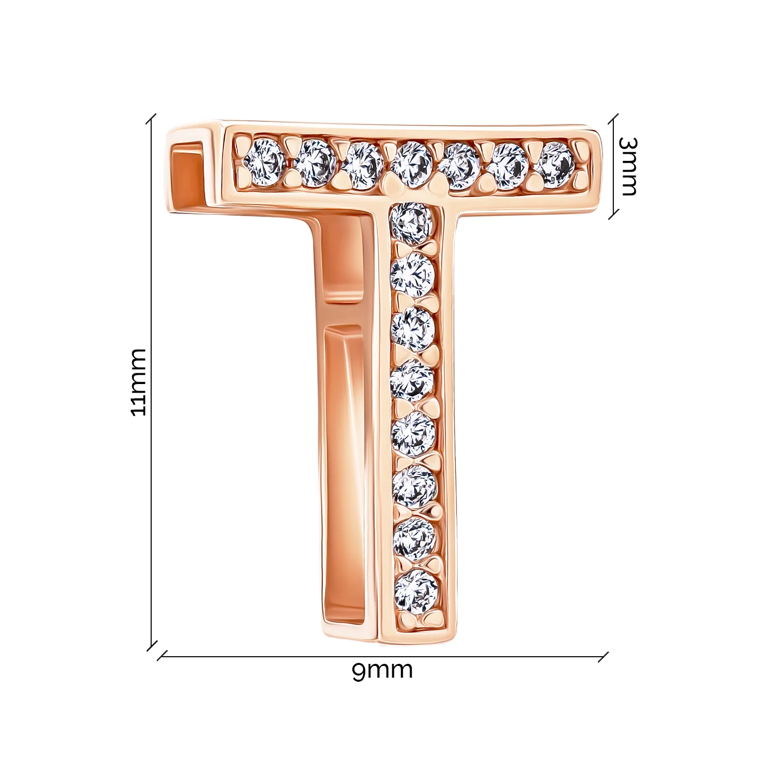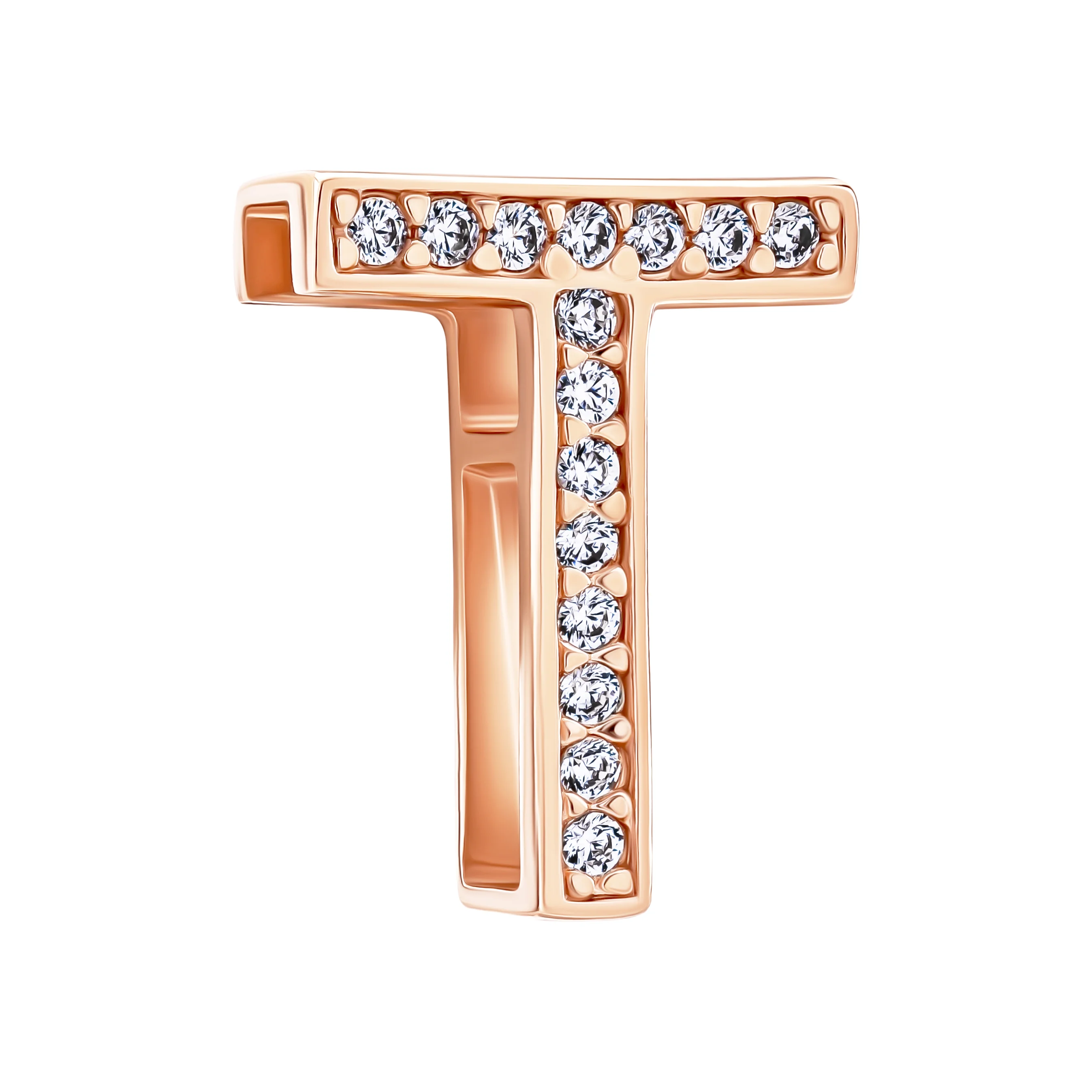 Підвіс із червоного золота "Літера Т" з фіанітами - 1999576