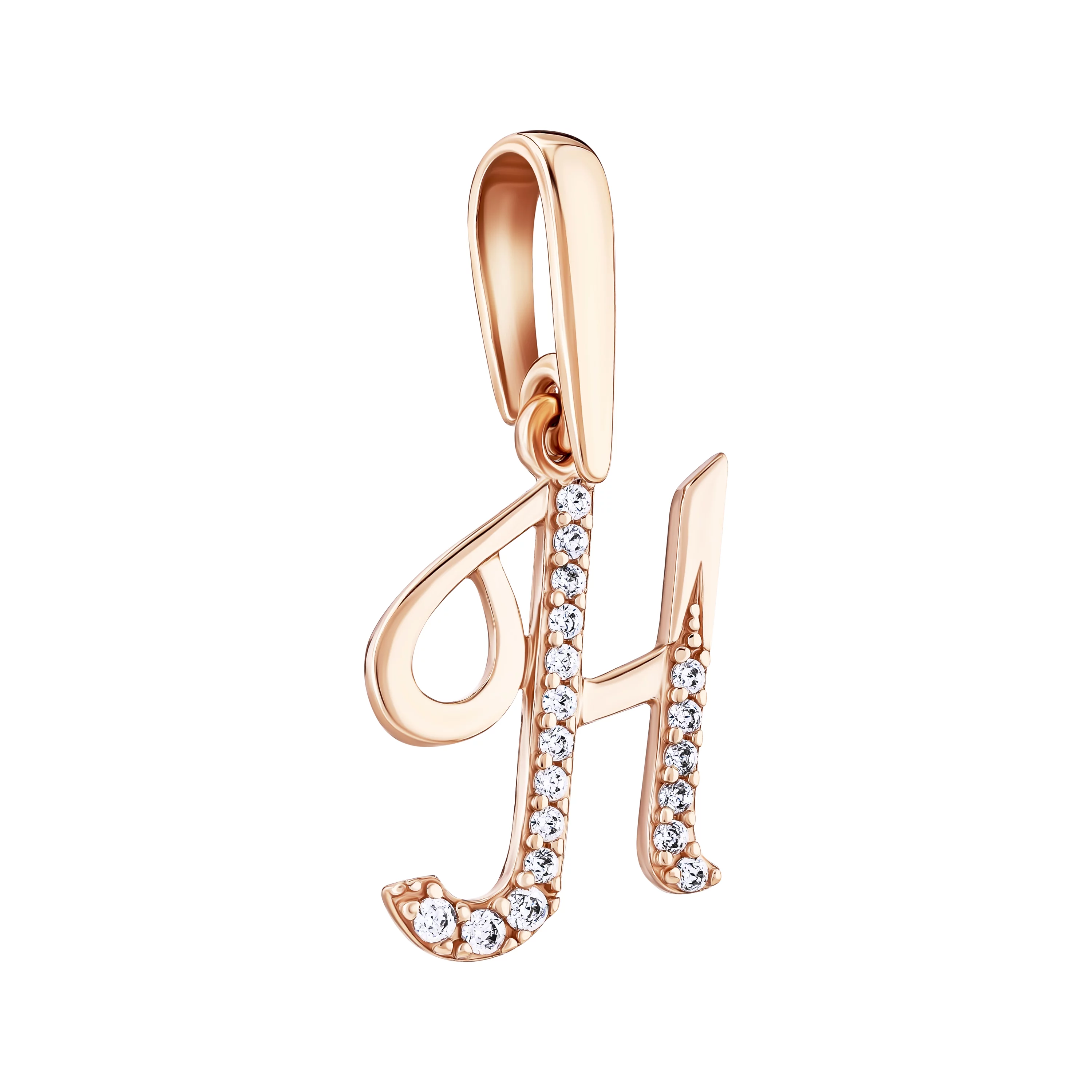 Стильний підвіс "Літера М" з червоного золота з доріжкою з фіанітів - 1916259