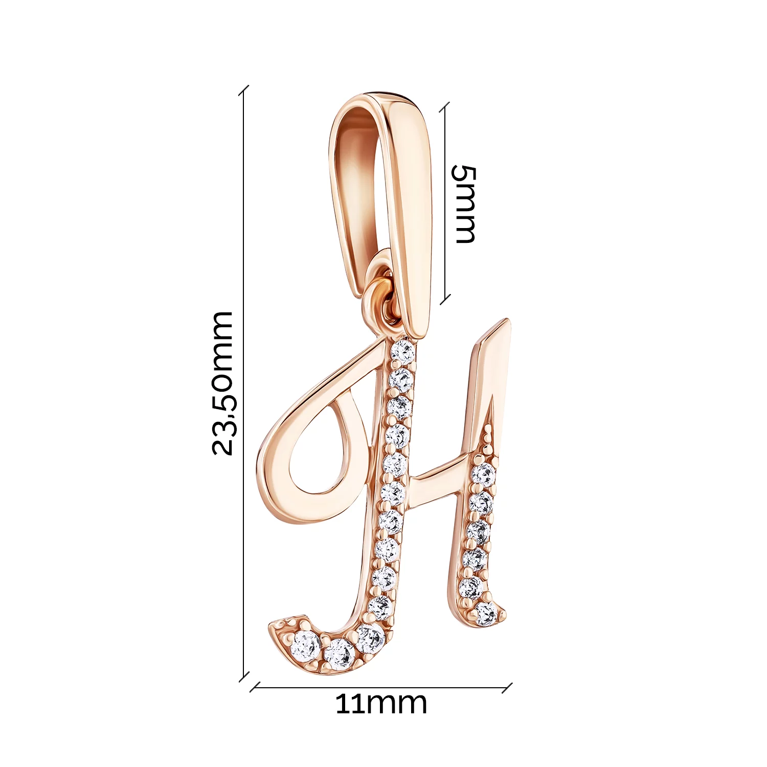 Підвіс із червоного золота "Літера Л" з фіанітами з червоного золота - 1916267