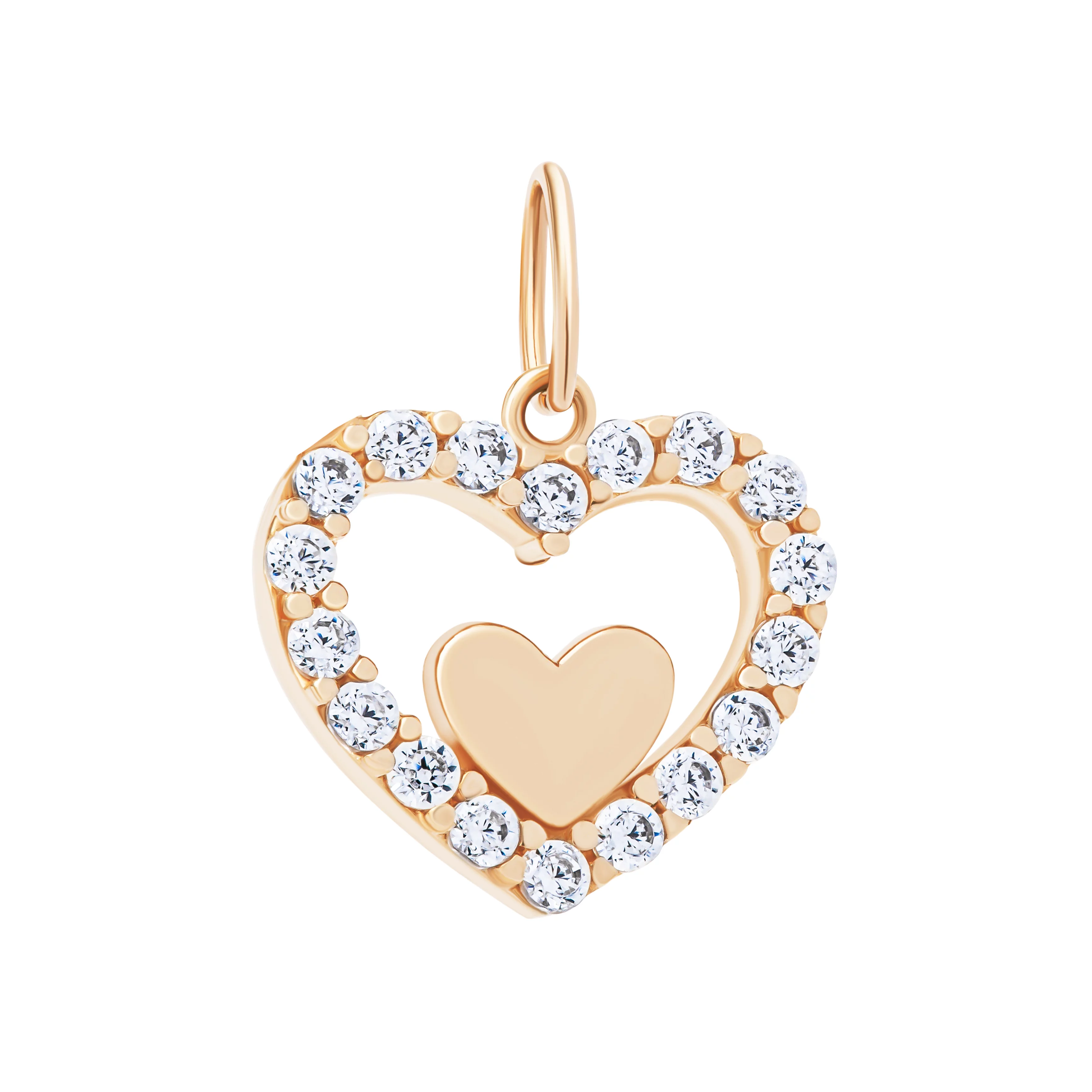 Підвіс із червоного золота "Серця" з фіанітами - 1728597