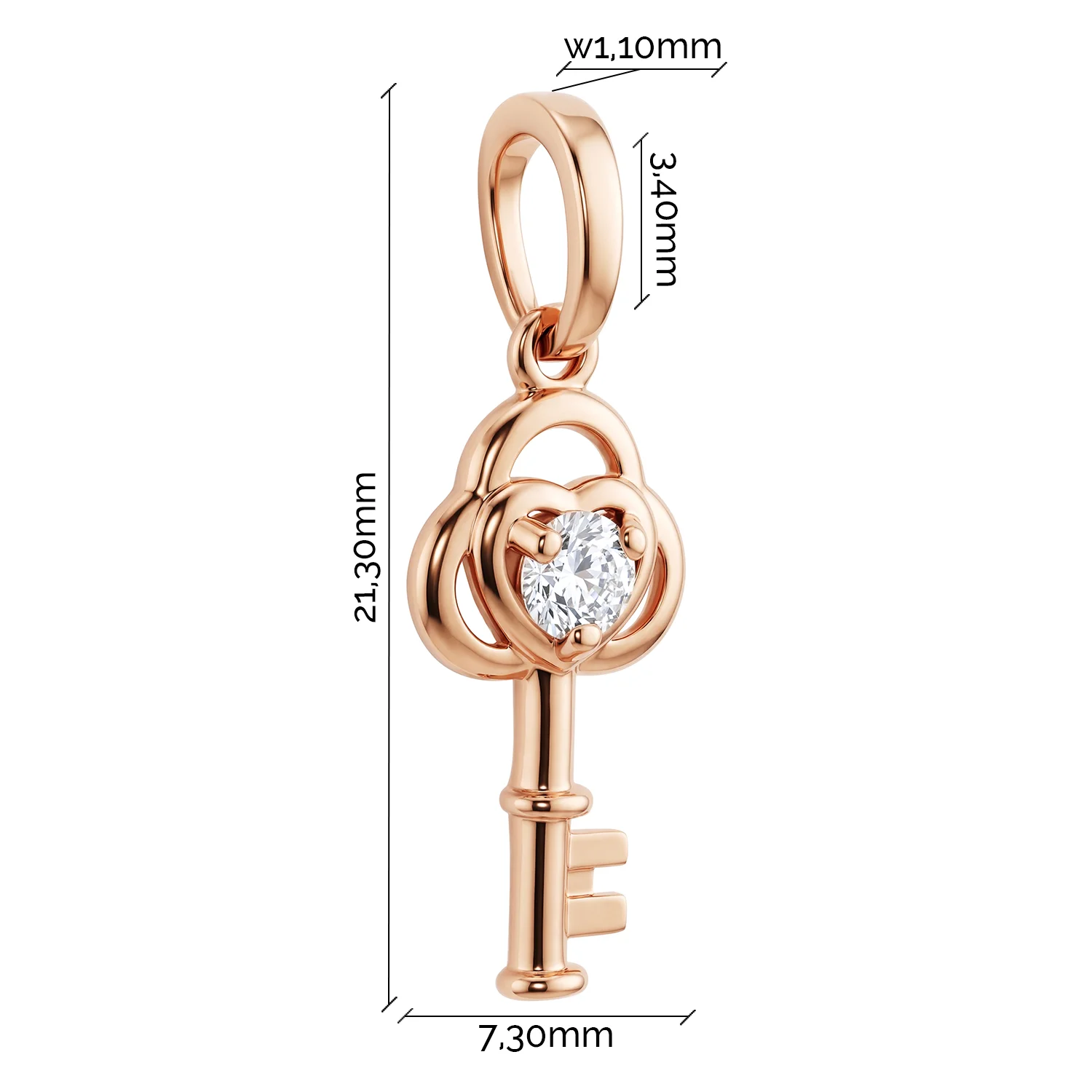 Підвіс "Ключ" у червоному золоті з фианітом - 2210441