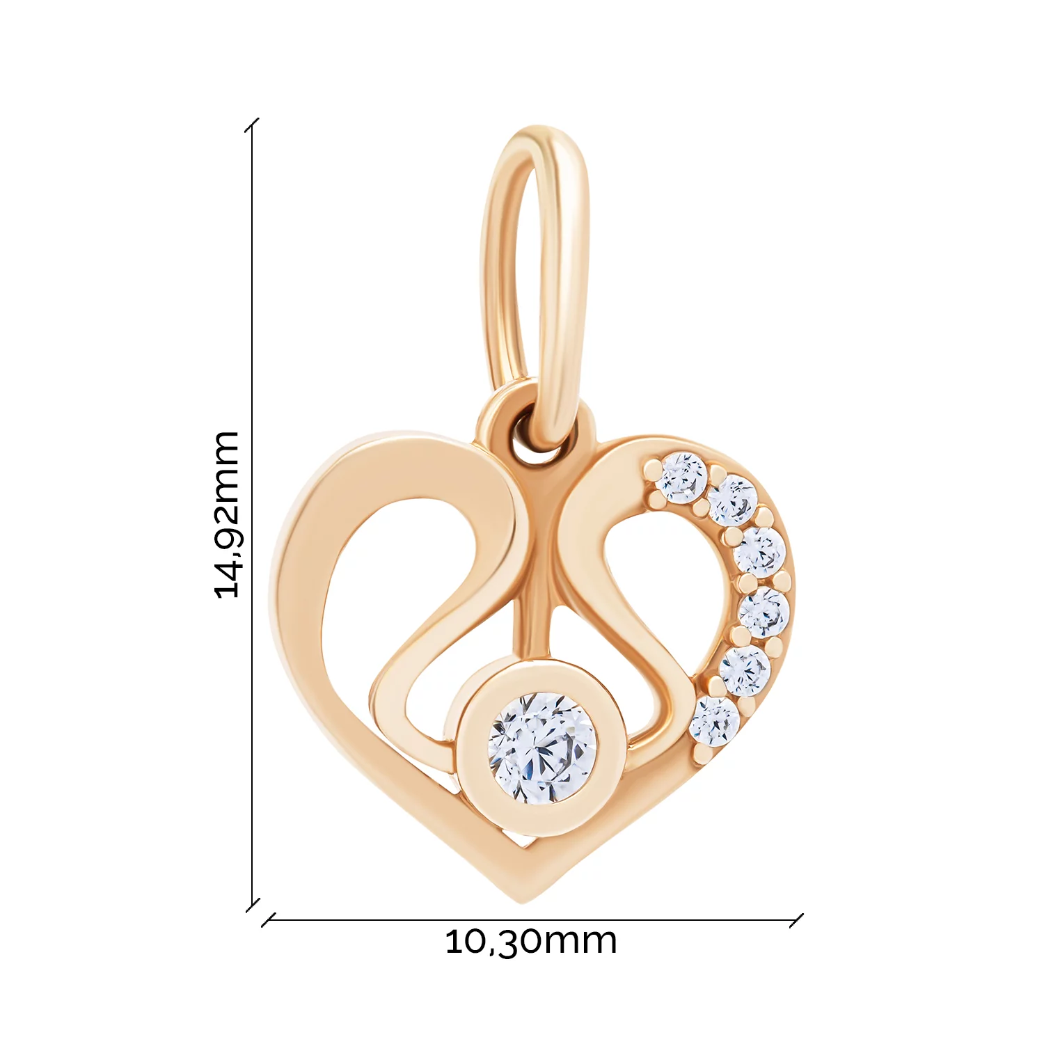 Підвіс з фіанітами "Серце" з червоного золота - 1798974
