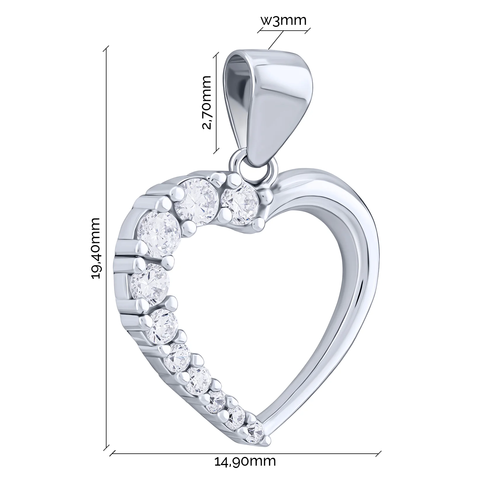 Підвіс "Серце" срібний з фіанітами - 2070537