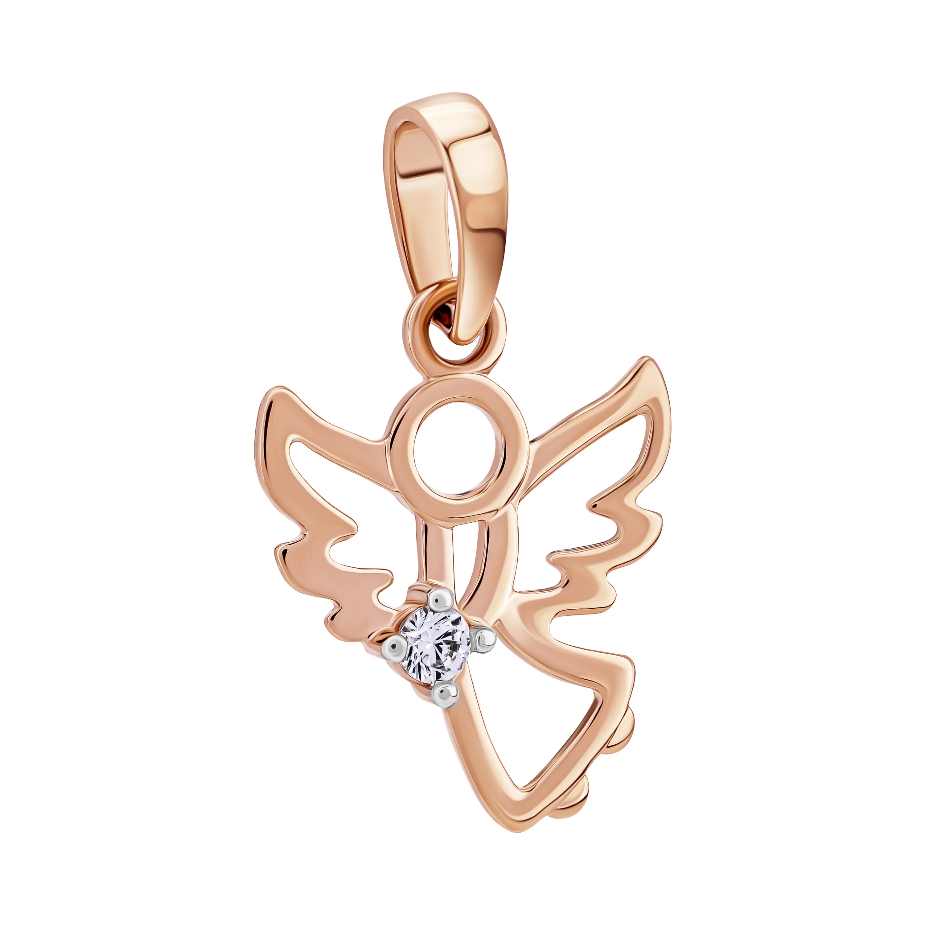 Підвіска "Янголятко" з червоного золота з фіанітом - 1876088