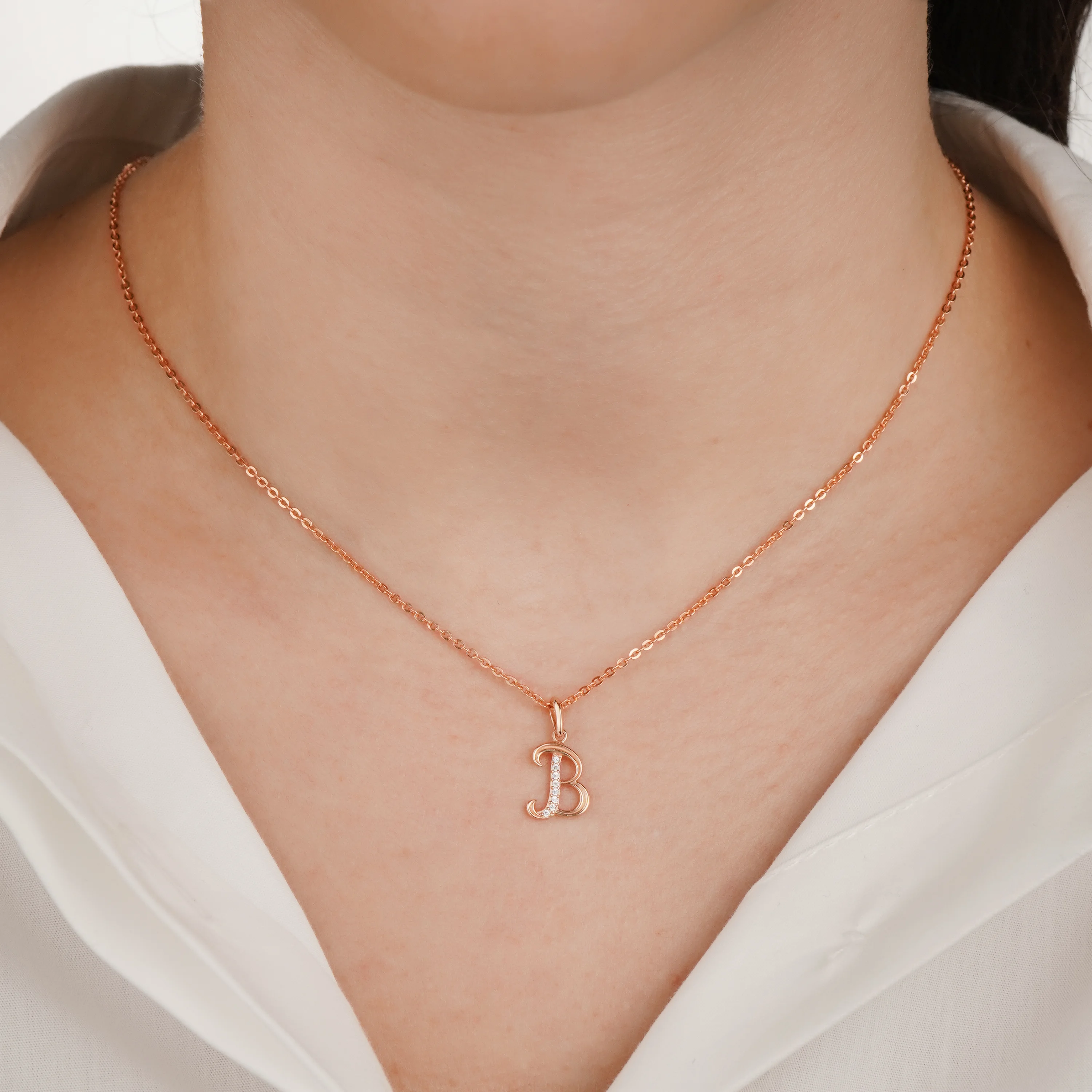 Елегантний підвіс "Літера А" з червоного золота з емаллю та фіанітом - 1944769
