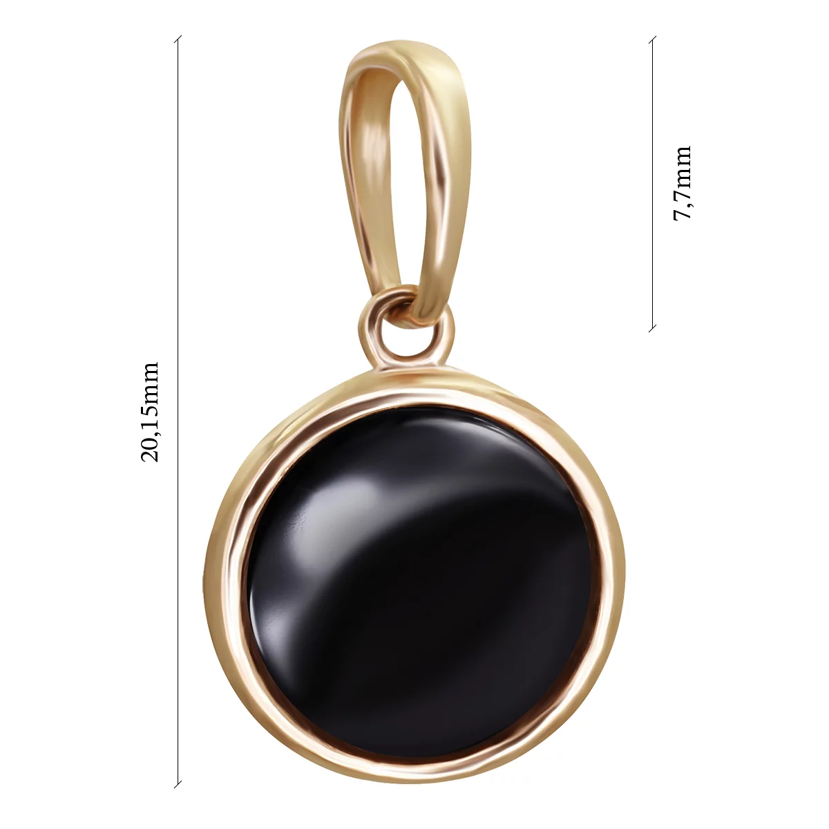 Стильний підвіс "Коло" з червоного золота з оніксом та фіанітами - 1953695
