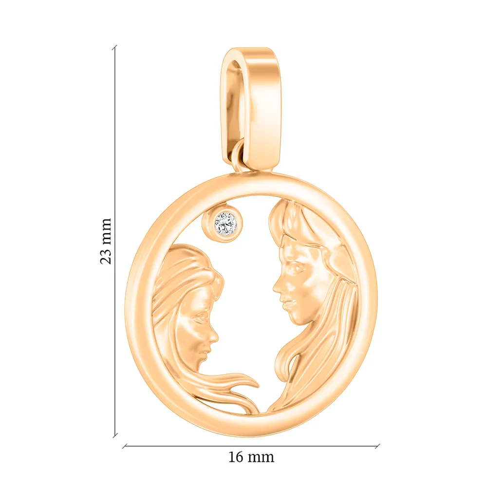 Підвіска з червоного золота з фіанітом "Мама і Дочка" - 965517