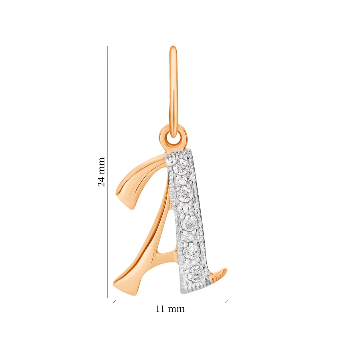 Стильна підвіска "Літера А" із червоного золота з доріжкою з фіанітів - 1878647