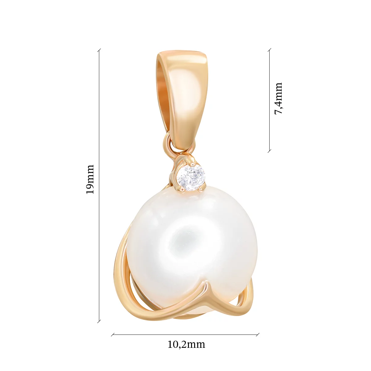 Підвіска з червоного золота з фіанітом і перлиною - 890809