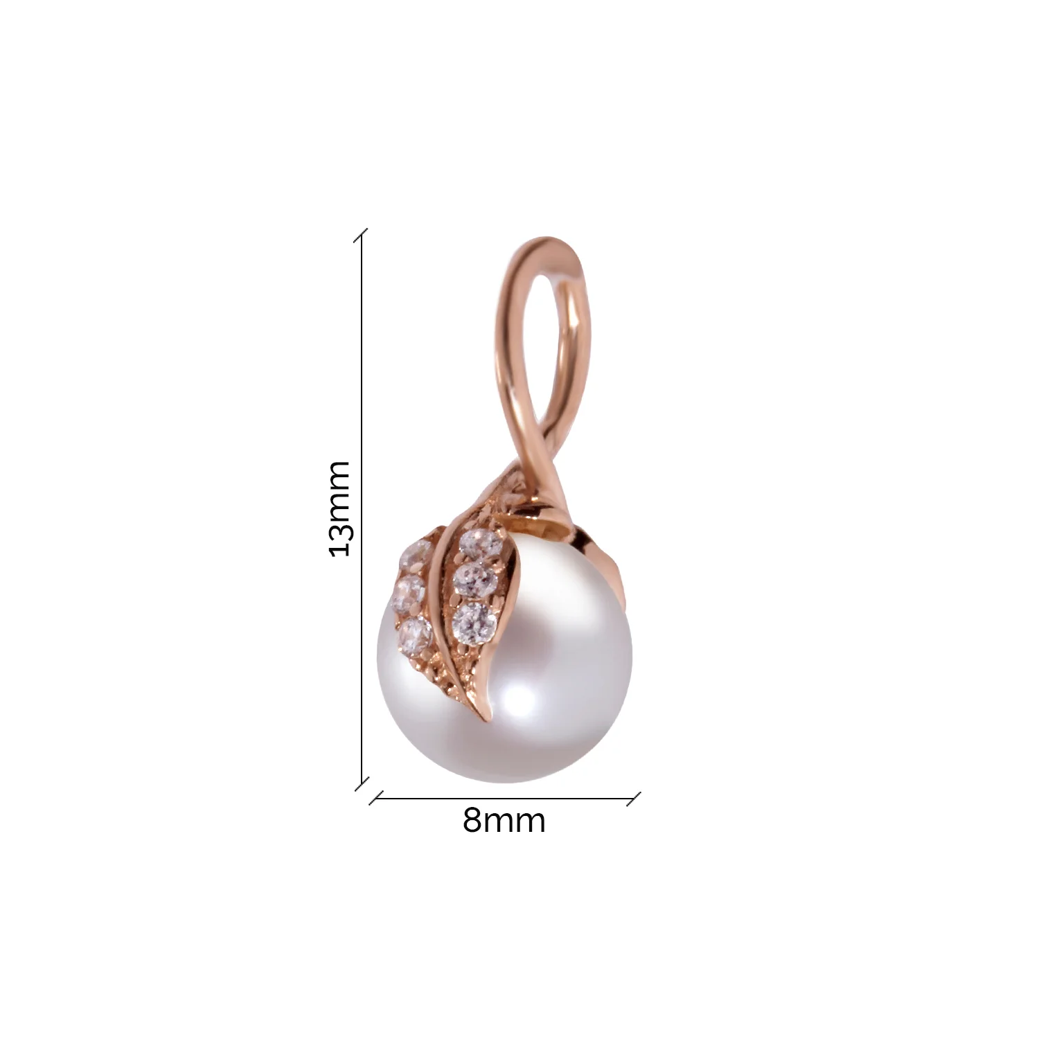 Елегантний підвіс краплеподібної форми з білого золота з фіанітами та перлиною - 1915883