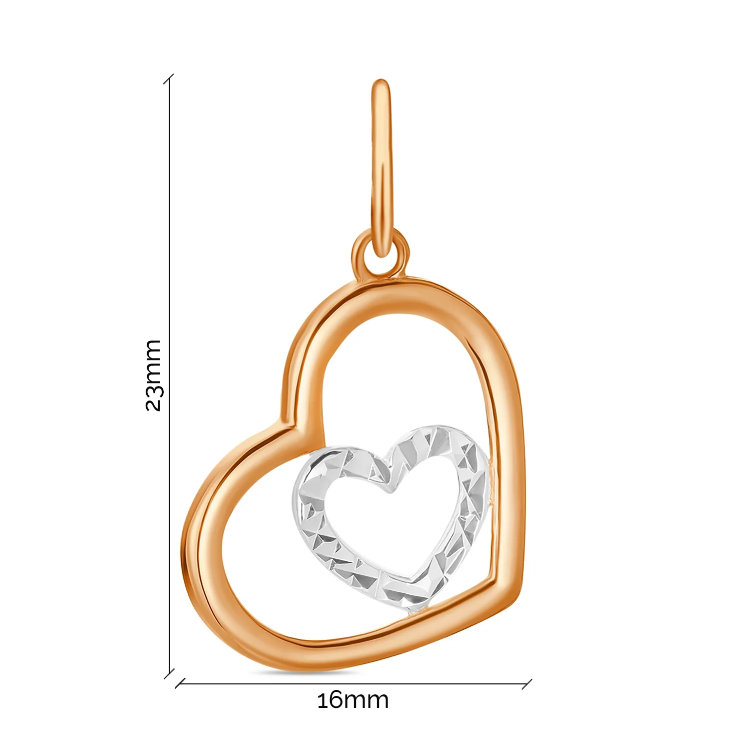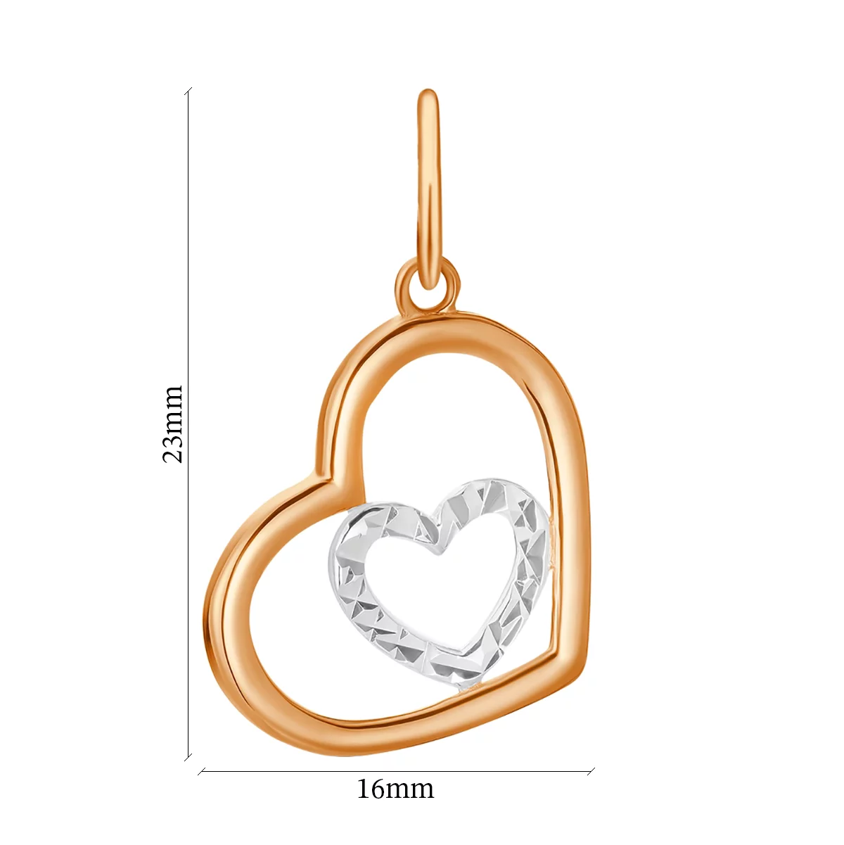 Підвіс із червоного золота "Серце" з родіюванням та алмазною гранню - 1526817