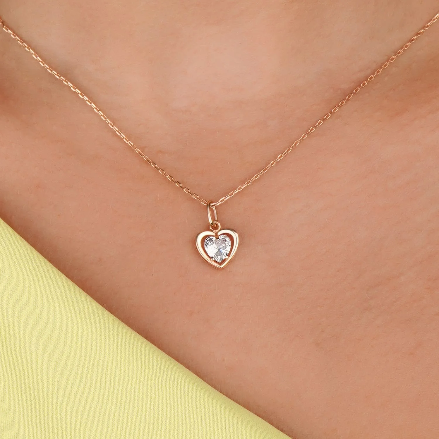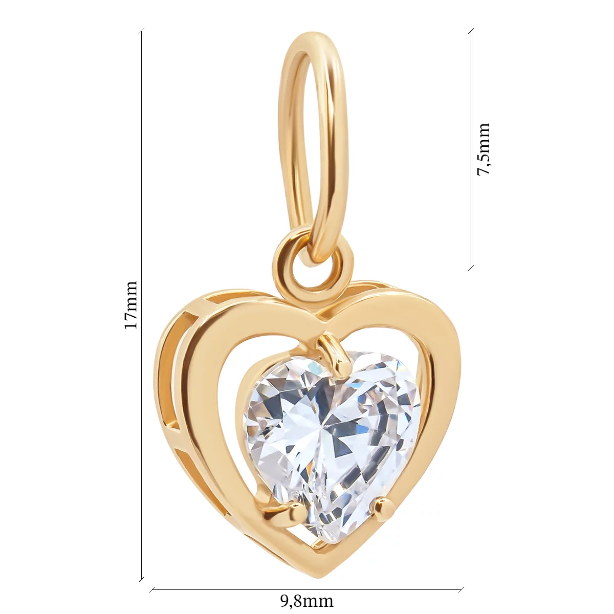 Підвіс "Серце" з червоного золота з фіанітом - 1342887
