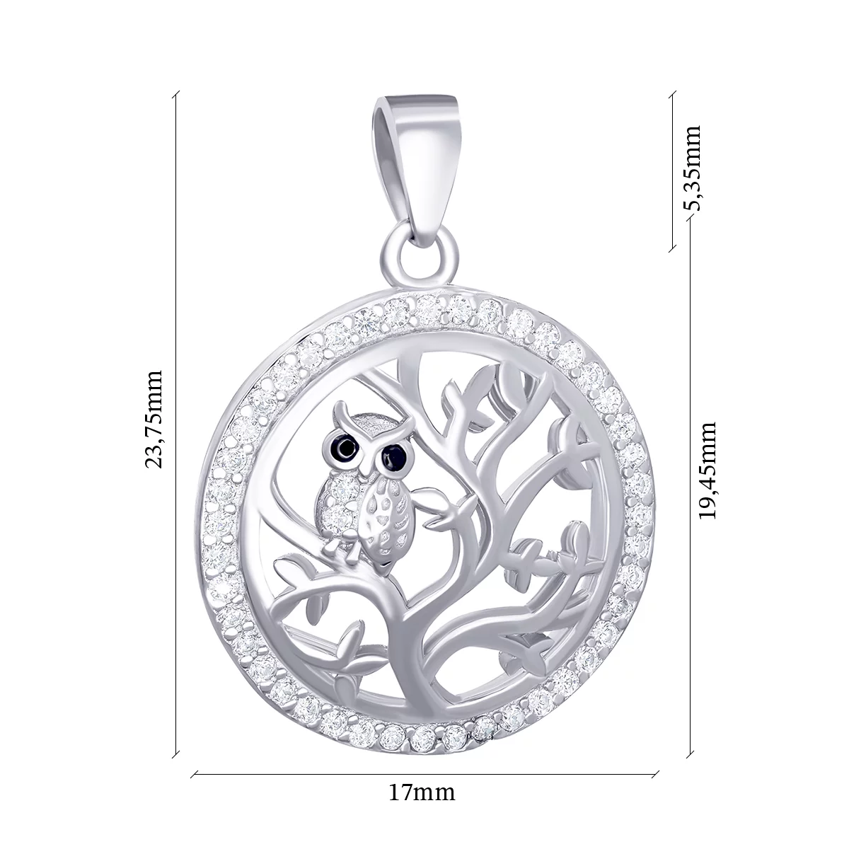 Підвіска срібна з фіанітом "Сова на Дереві" - 896670