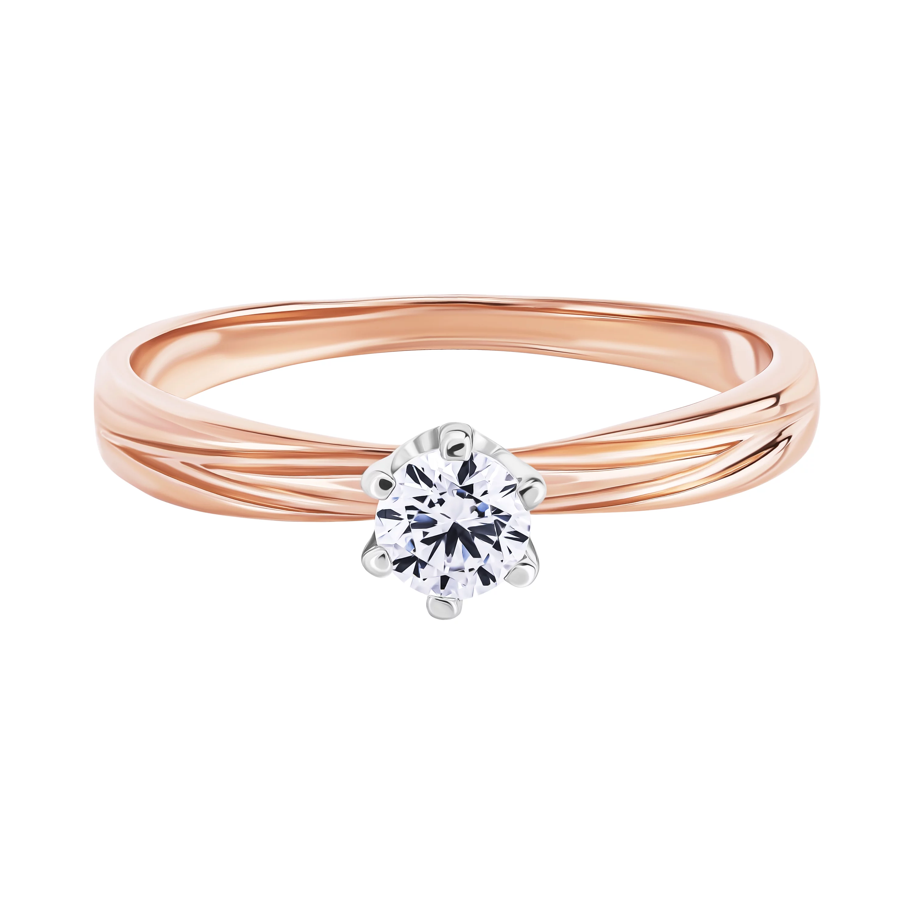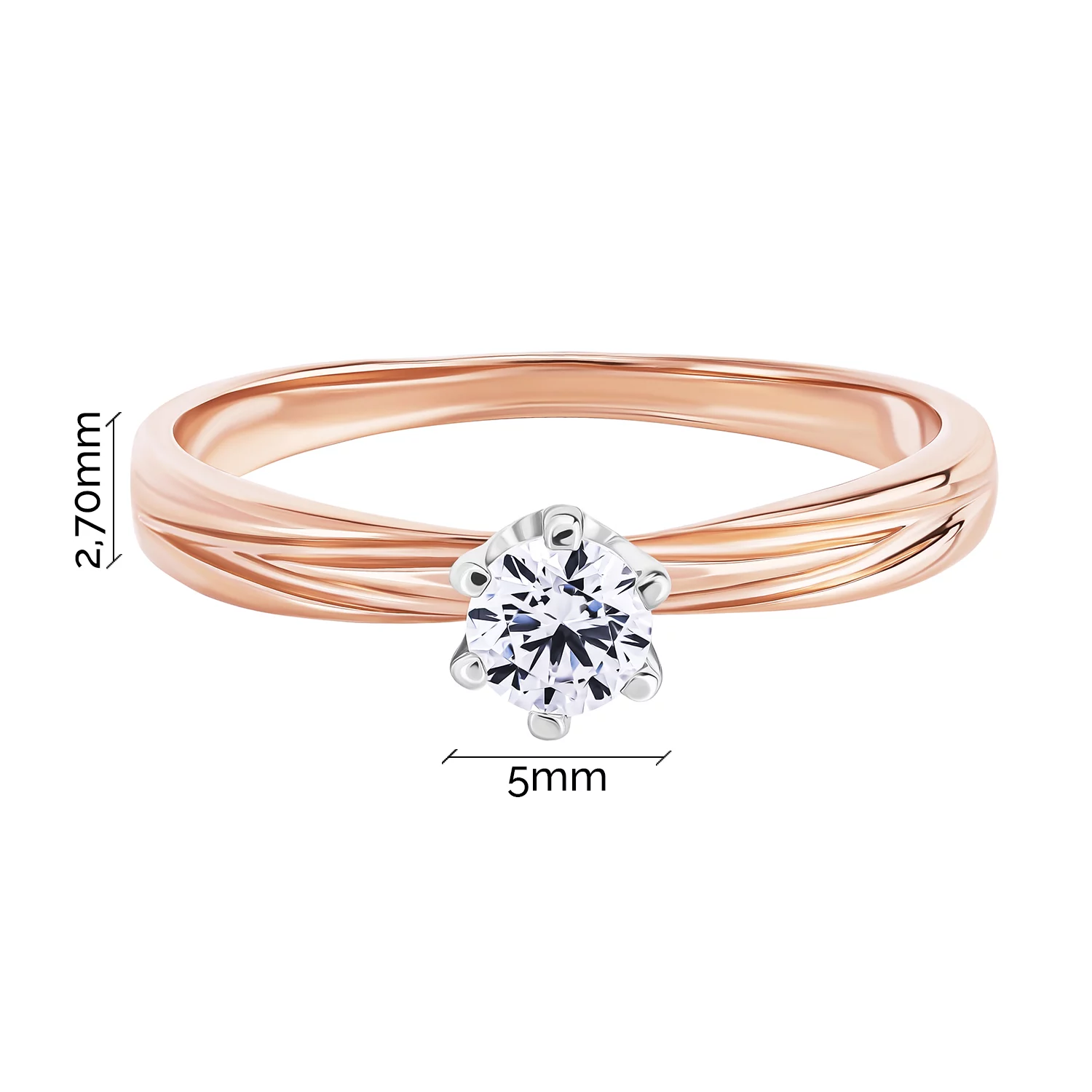 Каблучка з комбінованого золота в мінімалістичному стилі з фіанітом - 1878027