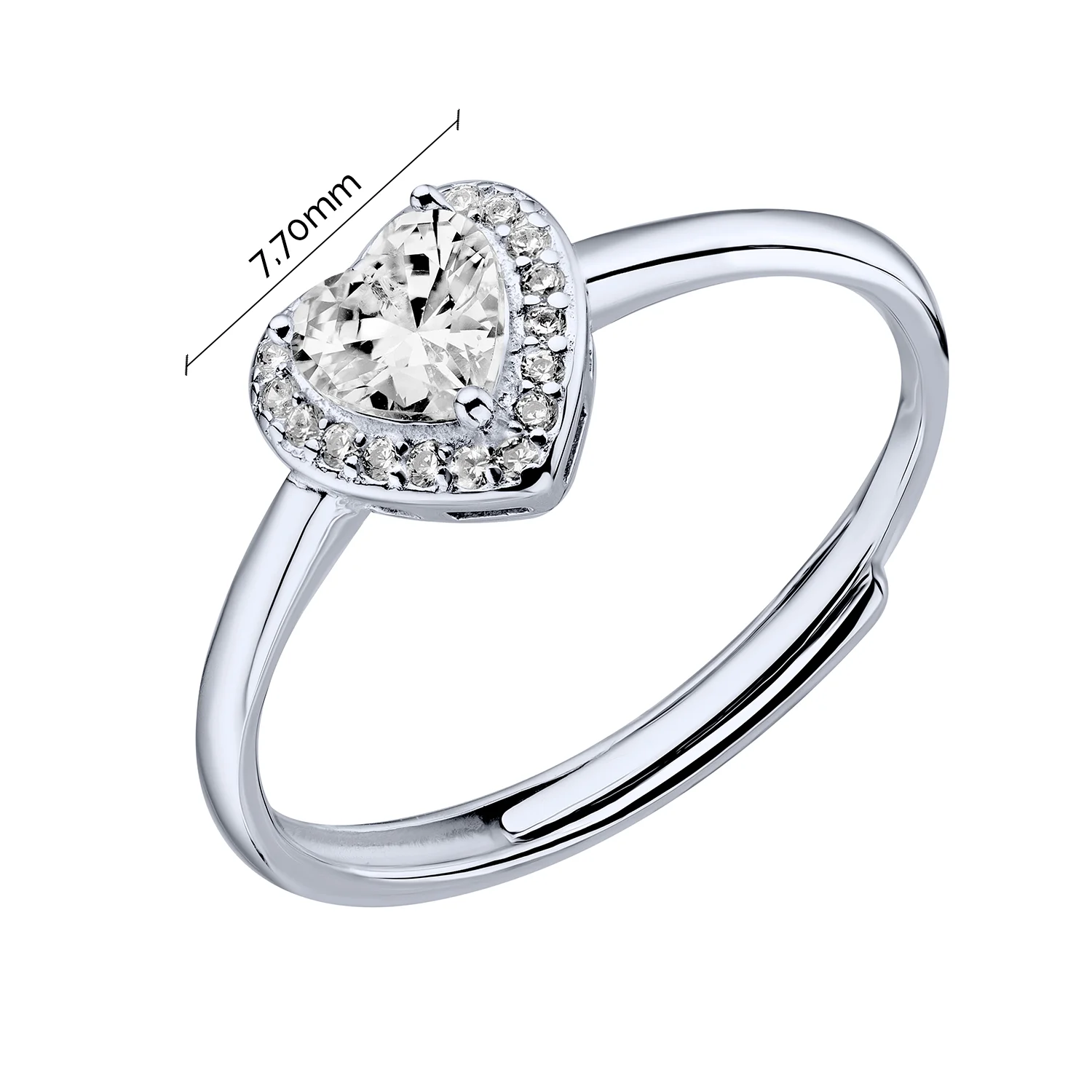 Срібна розсувна каблучка "Серце" з фіанітами - 2001647